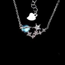 The Saturn necklace is more than an accessory; it is a celebration of celestial beauty and human ingenuity. Crafted from materials like sterling silver, gold, and embellished with gemstones or micro zircons, this necklace captures the planet Saturn's ethereal majesty. The iconic rings, either delicately engraved or boldly represented, are the hallmark of its design. Each necklace is a miniaturized work of art, meticulously crafted to evoke the mystery of the cosmos.