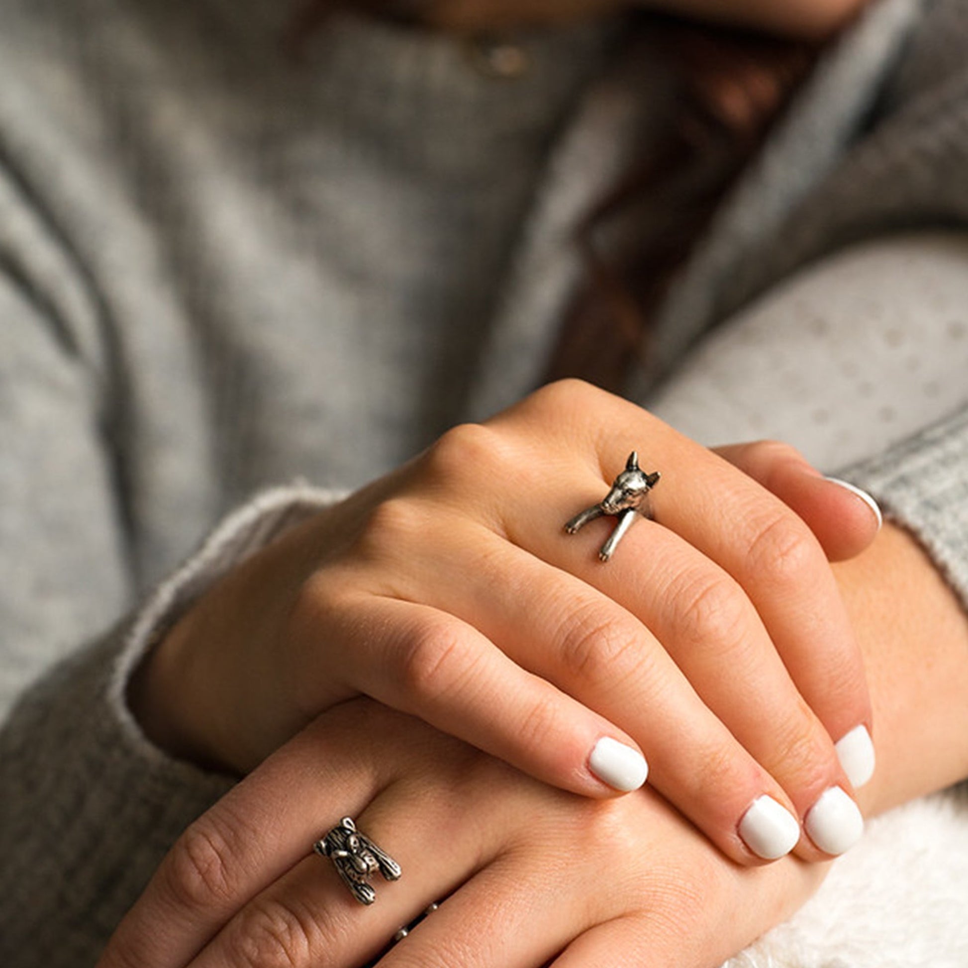• Klassische, aufwendige Details – Auf jedem kleinen, umwickelten Ring ist der „Bullterrier“ abgebildet, ein Bullterrier, der über Ihren Finger blickt, um Sie daran zu erinnern, wie sehr er Sie liebt!