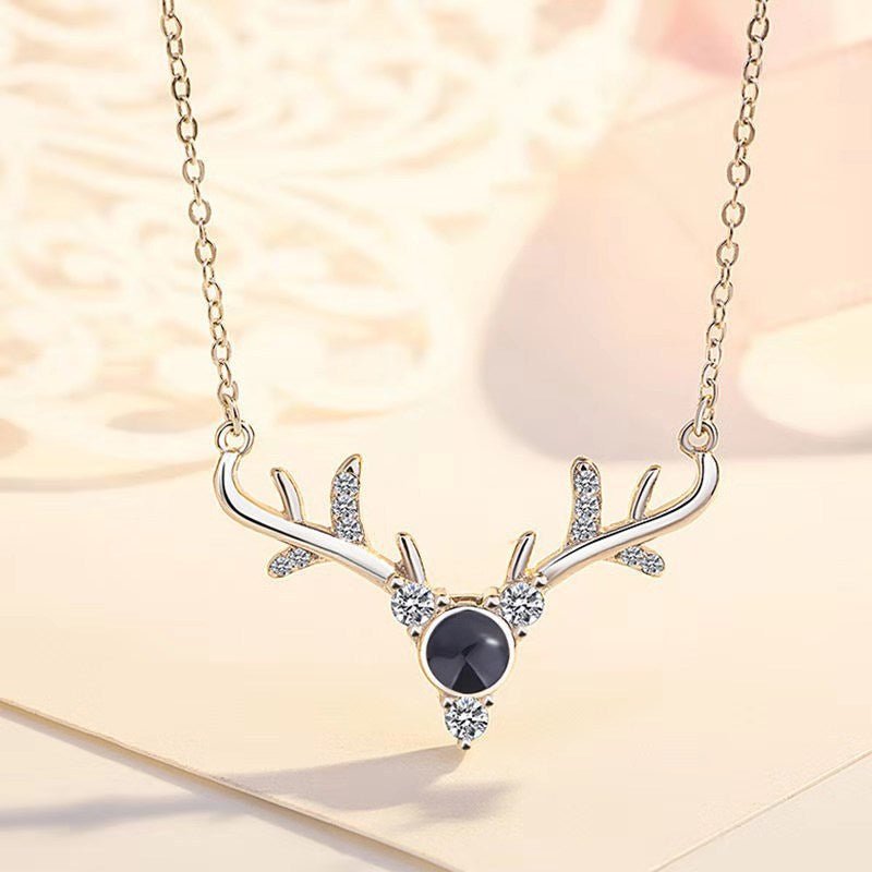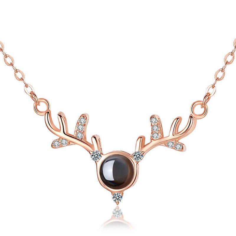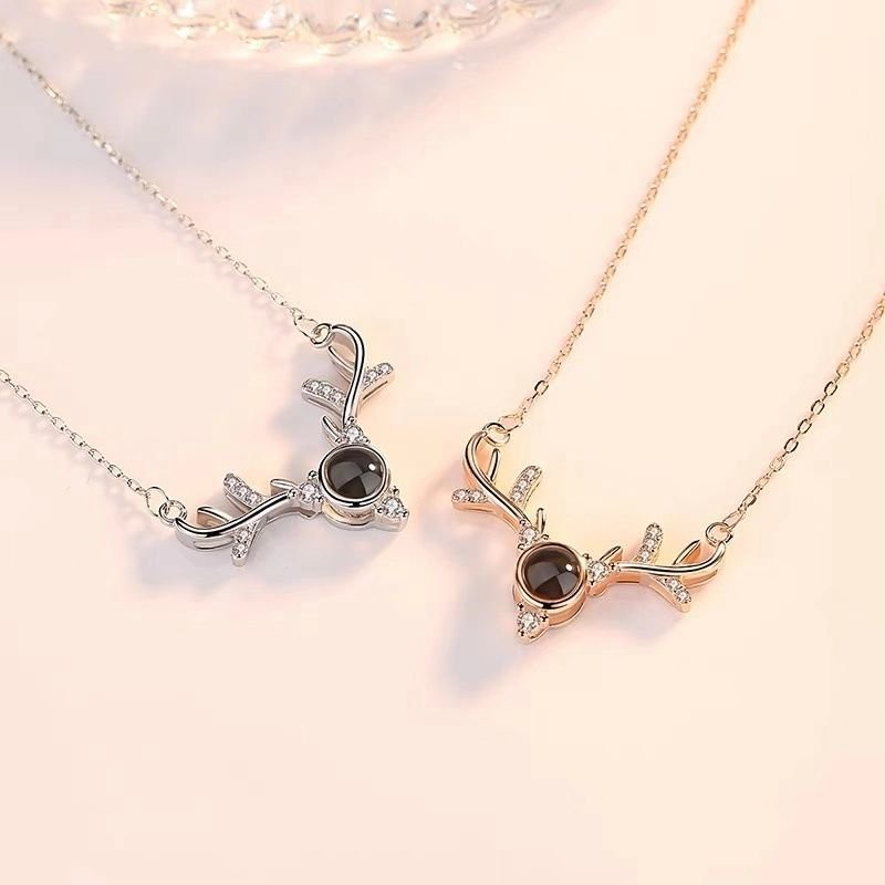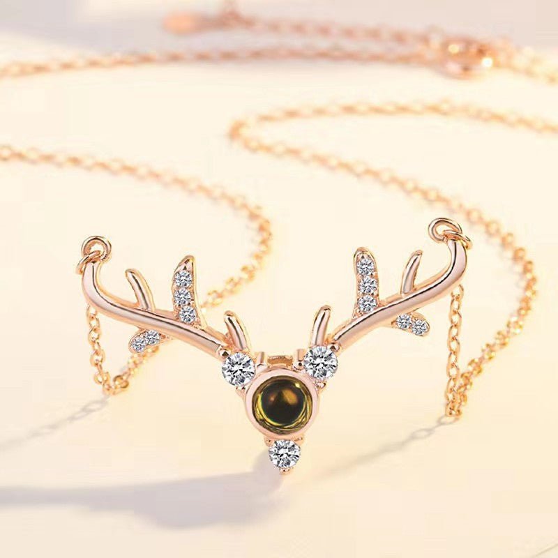 Personalisierte Halskette mit versteckter Fotoprojektion und Hirschgeweih