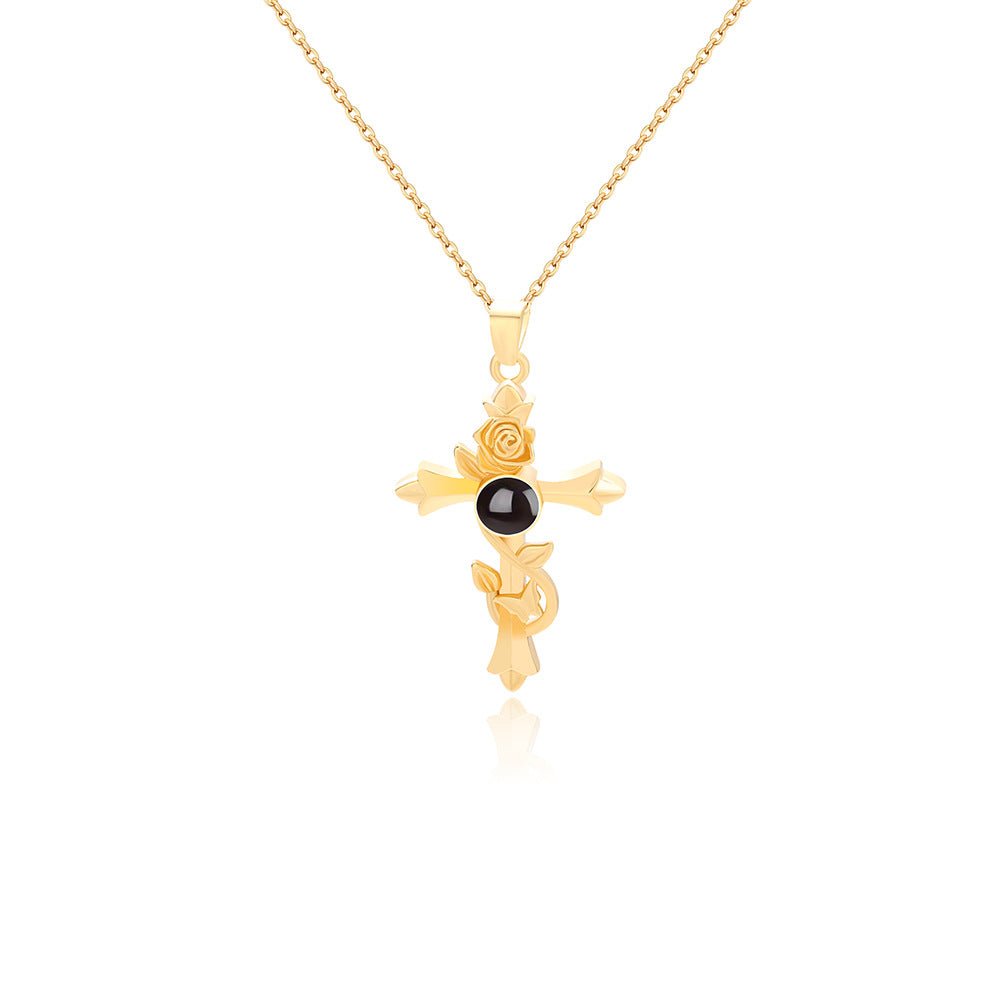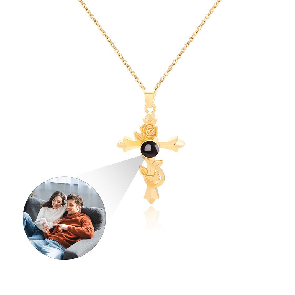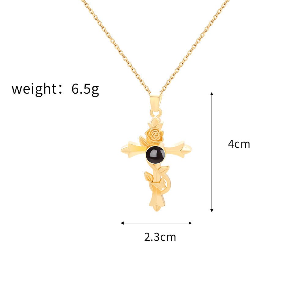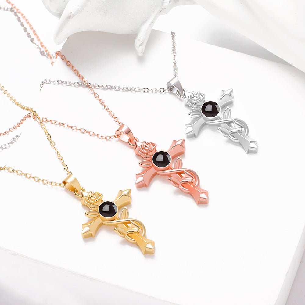 Benutzerdefinierte versteckte Fotoprojektion Vintage Rose Kreuz Halskette