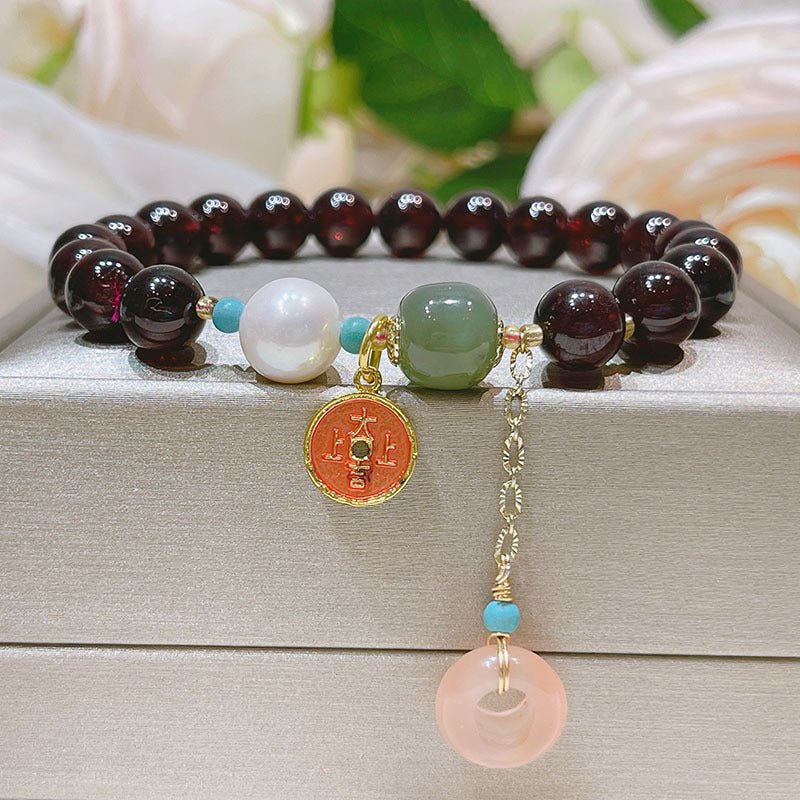 Natural Garnet with Jade Charm Bracelet
