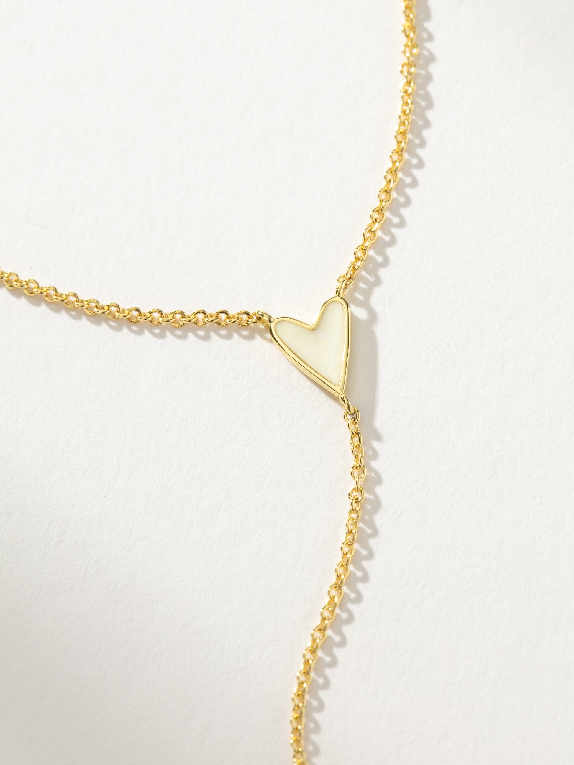 Nous avons associé deux de vos modèles préférés pour créer le collier Lariat Amour. Ce long collier à chaîne orné d'un cœur en émail blanc s'harmonise parfaitement avec nos autres modèles à cœur blanc. Complétez votre look avec les pièces de notre collection Cœurs .