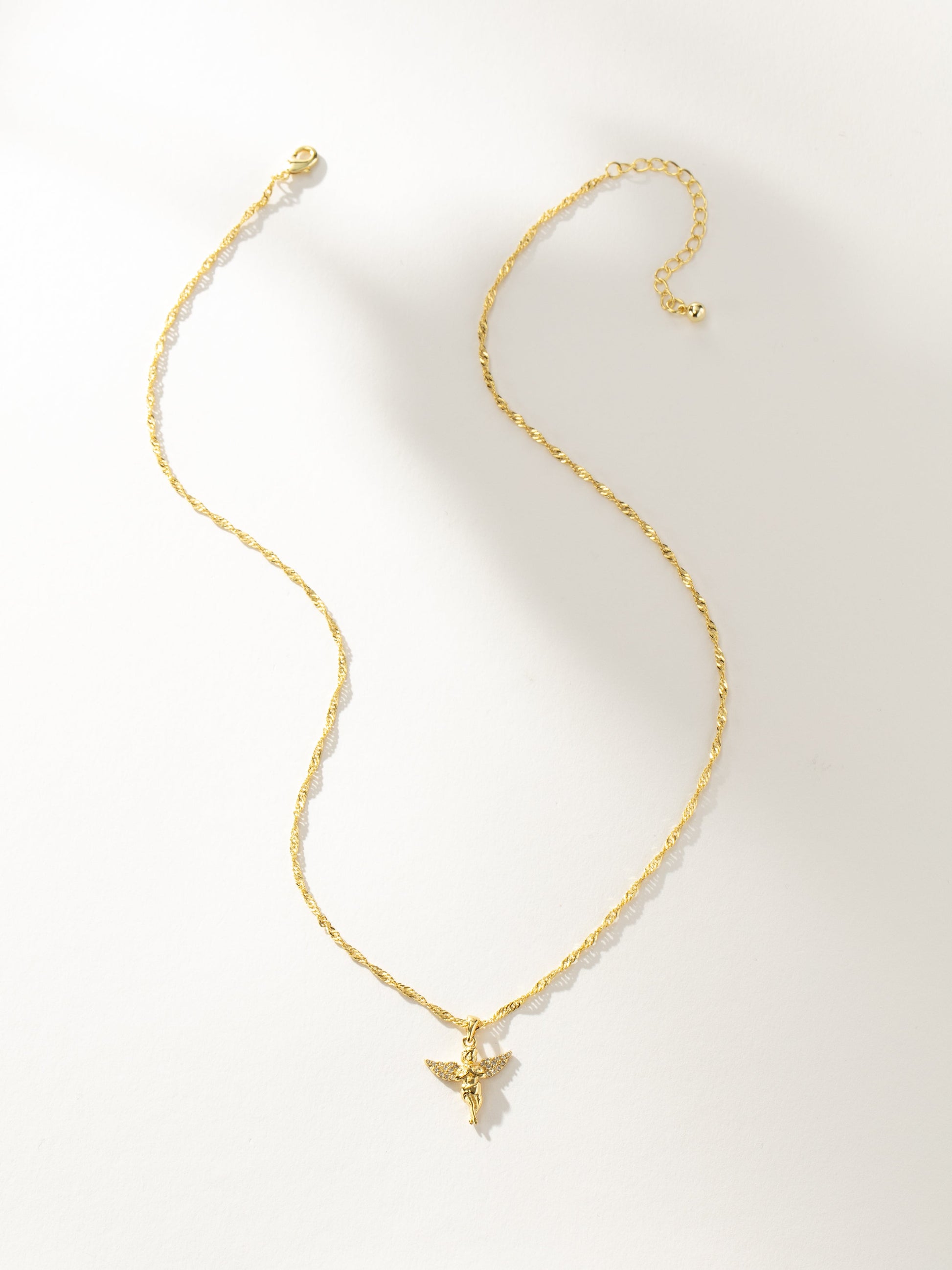 Rien n'est plus divin que notre collier pendentif Ange sur Terre. Composé d'une chaîne torsadée et d'un pendentif ange, ce collier est idéal pour se superposer. Recréez la collection de colliers de Kristin avec notre collier Protection et notre collier Lariat Glacé .