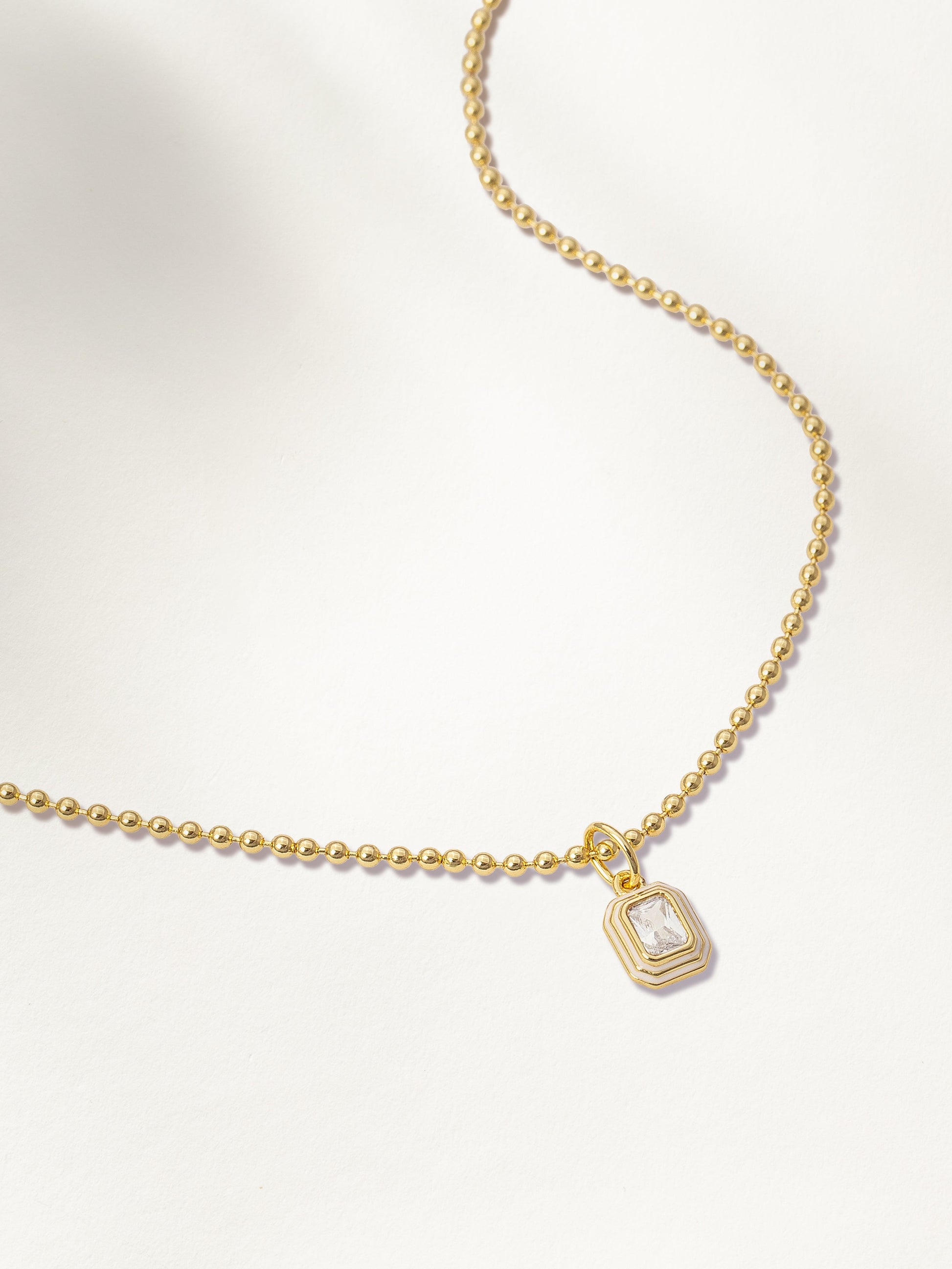 Notre collier pendentif et chaîne Applause est un véritable délice. Ce collier en argent ou en or, composé d'une délicate chaîne à billes et d'un pendentif rectangulaire en pierre précieuse, est idéal à superposer. Pour un look complet, associez-le à n'importe quel bijou de notre collection Just Add Sparkle .