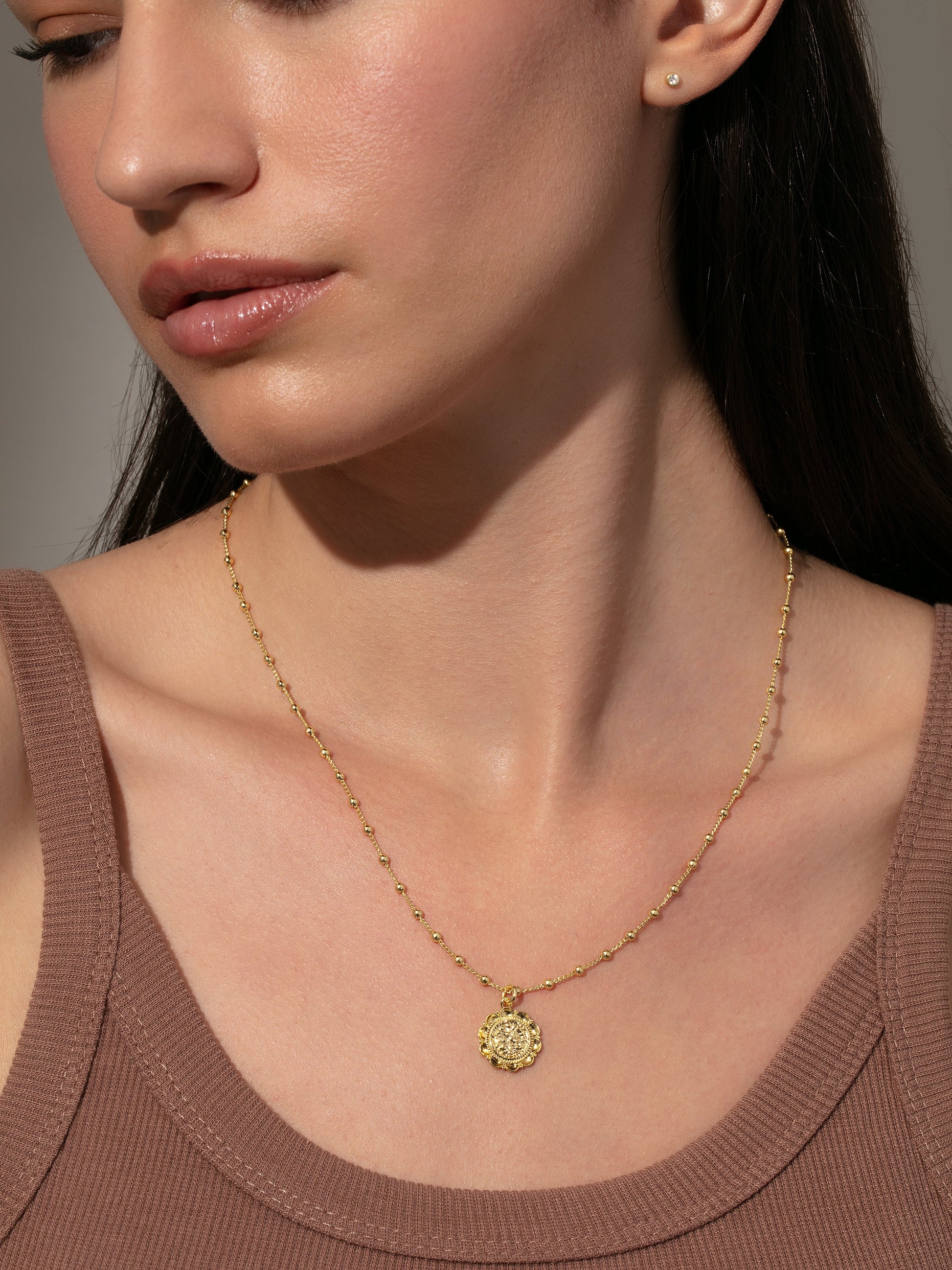Inspiré des trésors engloutis lors du célèbre naufrage de 1622, notre collier pendentif unisexe Atocha est un modèle magnifiquement élaboré, alliant modernité et charme historique espagnol. Disponible en or, argent, argent sterling et en deux tailles de pendentif, il s'intégrera parfaitement à votre collection de colliers du quotidien. Pour un look complet, associez ce collier pendentif et chaîne à vos délicats colliers préférés.