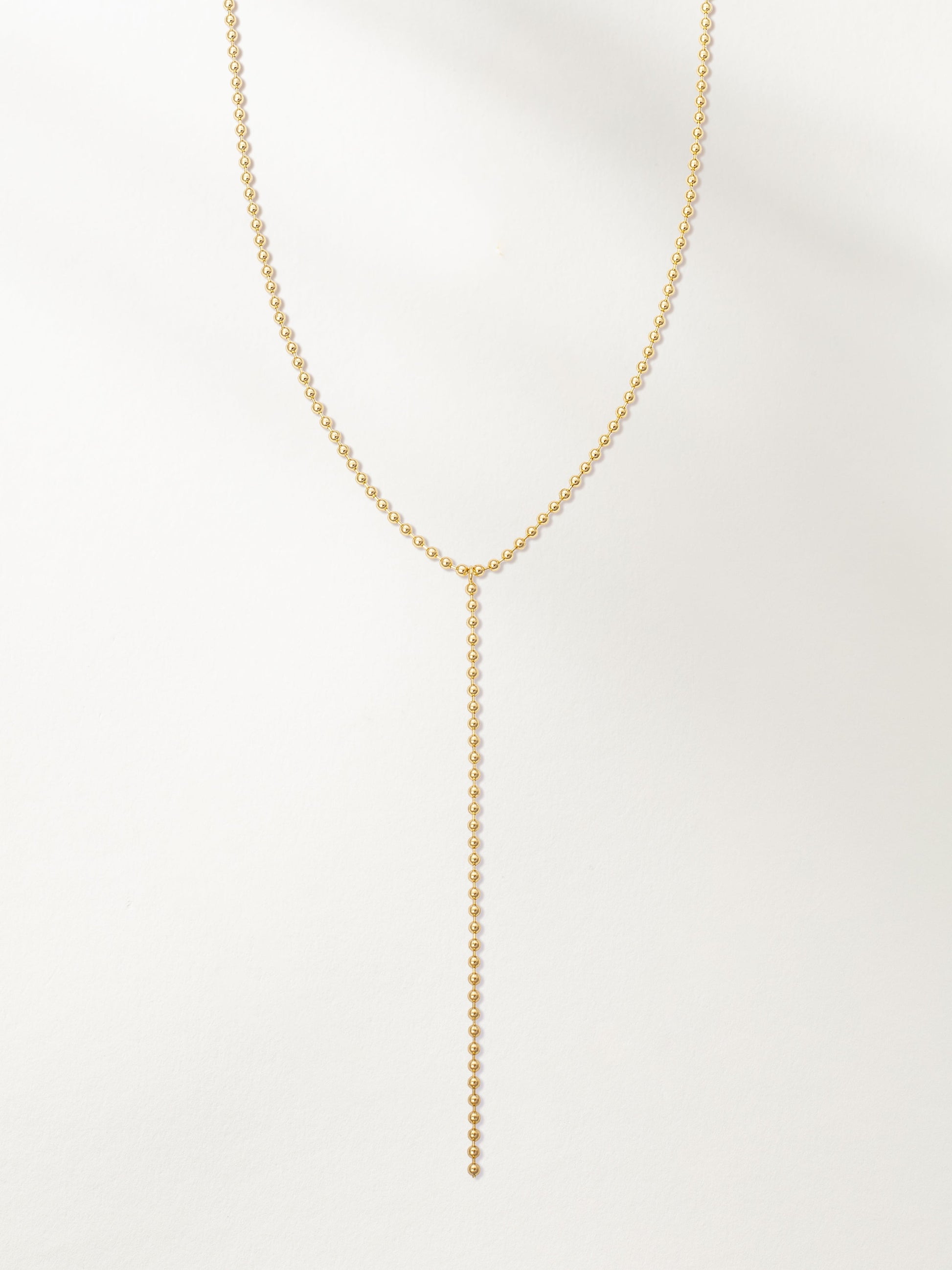Ajoutez de la longueur et de la texture à vos colliers avec notre collier lariat à chaîne à billes. Disponible en or et en argent, ce collier en Y est parfait pour se superposer à tous vos autres colliers à chaîne . Vous aimez ce look et souhaitez d'autres colliers longs à superposer ? Découvrez tous nos colliers lariat .