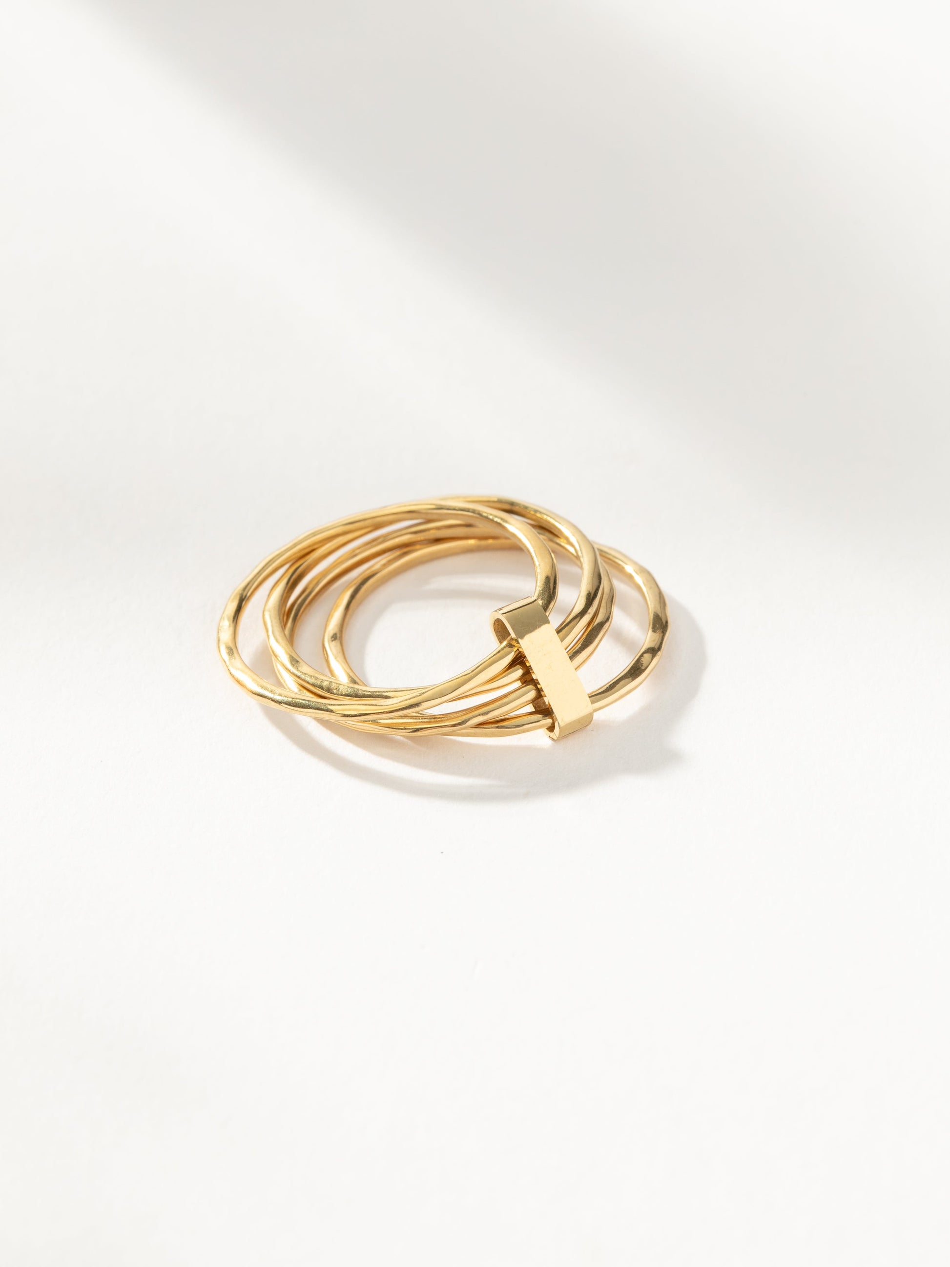À nos yeux, rien n'égale la simplicité des bijoux superposés, et c'est précisément pourquoi nous sommes obsédés par la bague superposée Bar None. Composée de quatre anneaux martelés reliés par une barre, elle est idéale pour superposer des bagues. Nous l'aimons tellement que nous l'avons déclinée en or et en argent. Pour plus de modèles superposés, découvrez notre collection « Superpositions » .