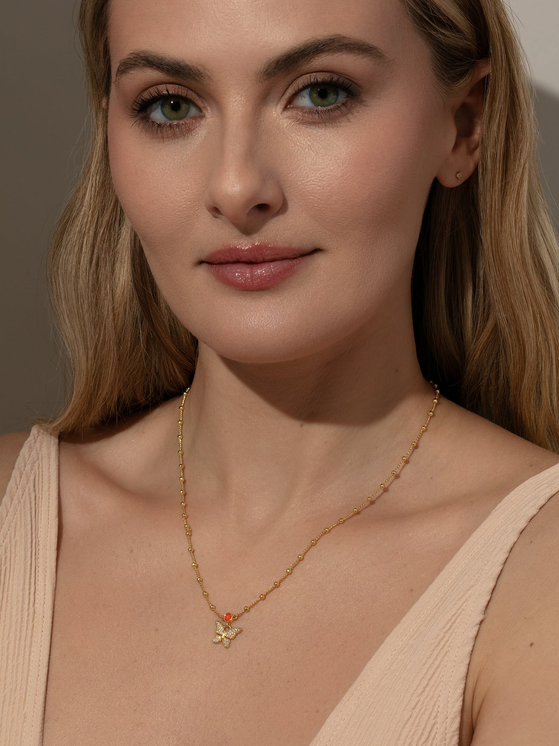 Ajoutez des ailes et une touche de couleur à votre collection de colliers avec notre collier pendentif Jardin de papillons. Pour nos modèles dorés, ce collier sera orné d'une pierre orange, tandis que pour nos modèles argentés, d'une pierre bleue. Pour un look complet, associez ce collier pendentif et chaîne à l'un des bijoux de notre collection Jardin de papillons .