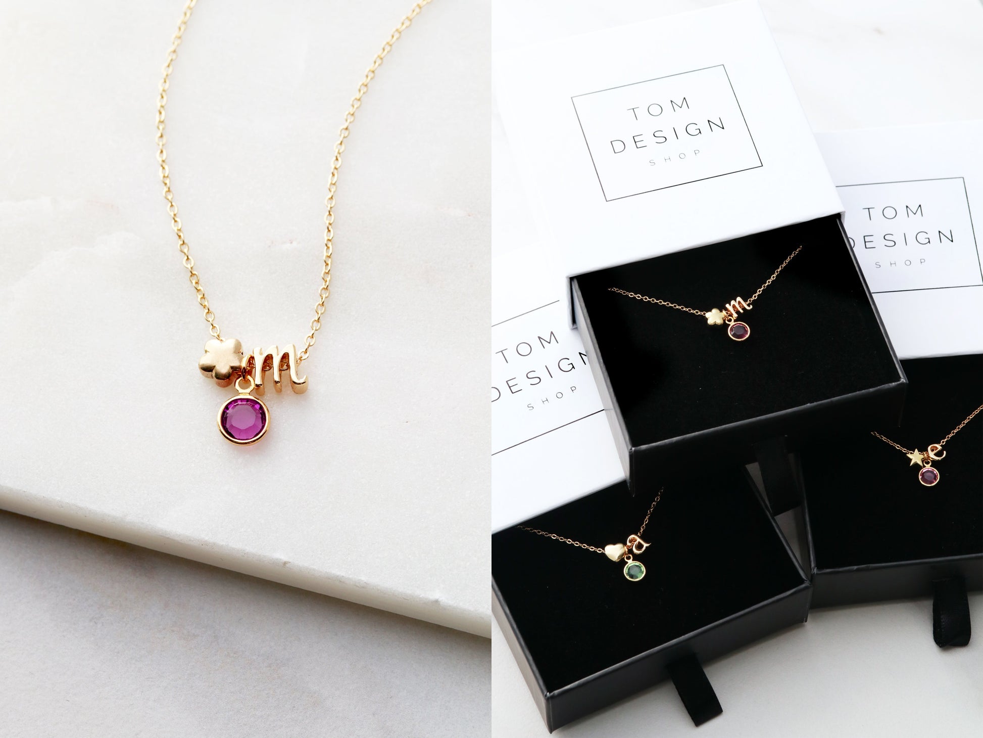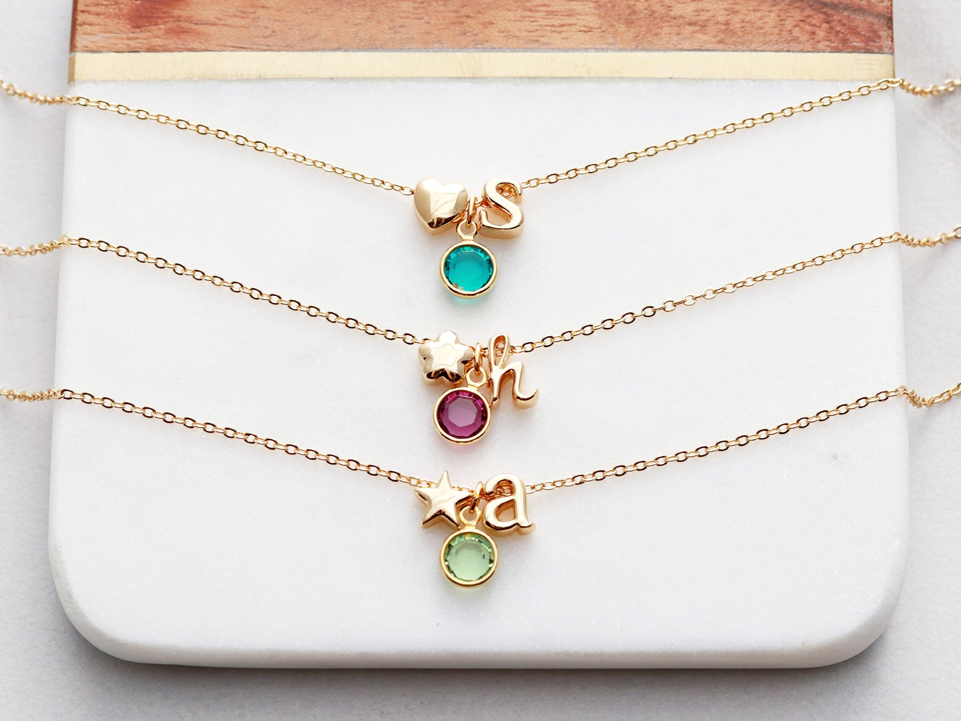 *Le collier est livré avec une initiale, une pierre de naissance et une breloque de forme : cœur, étoile ou fleur