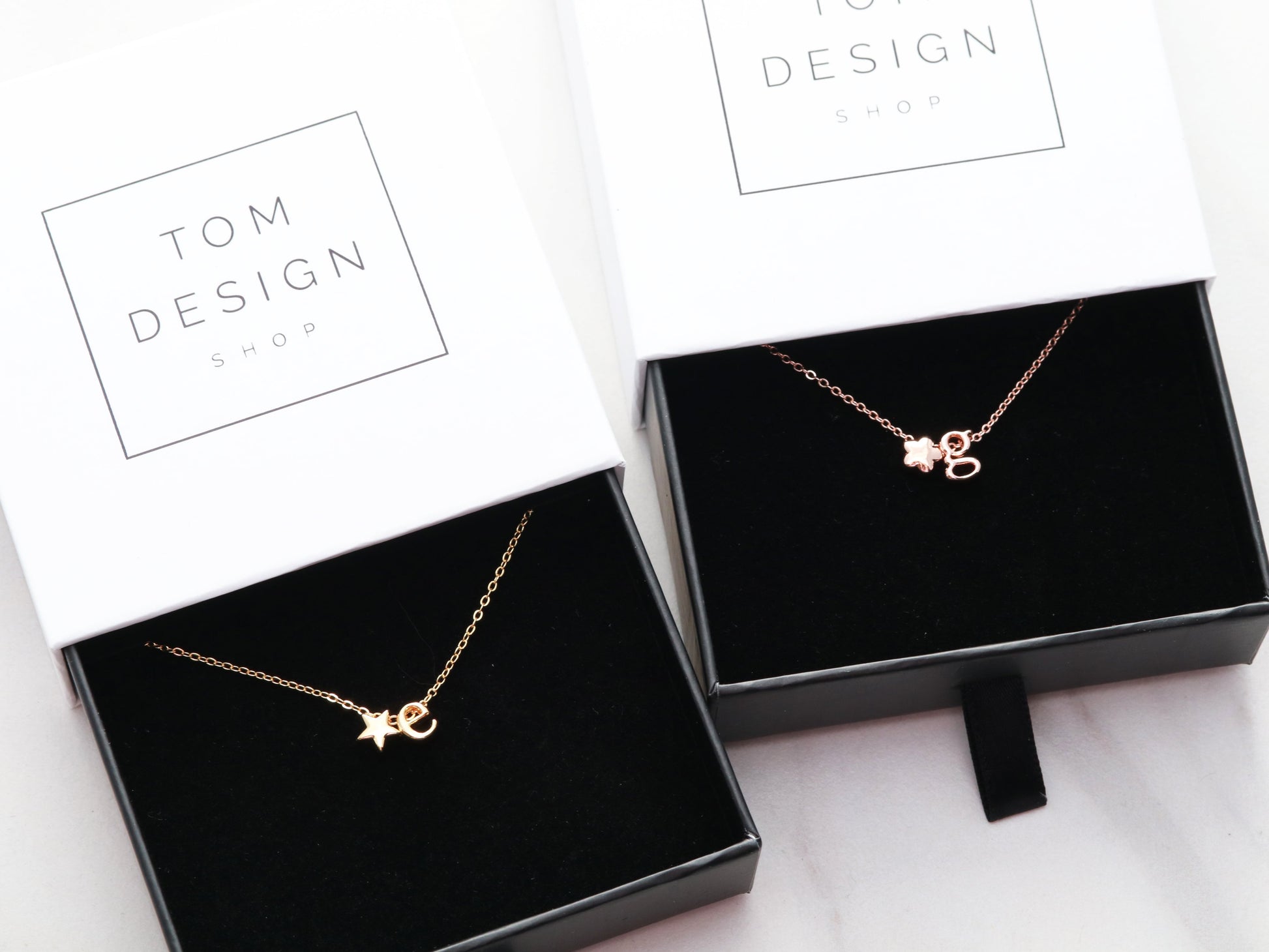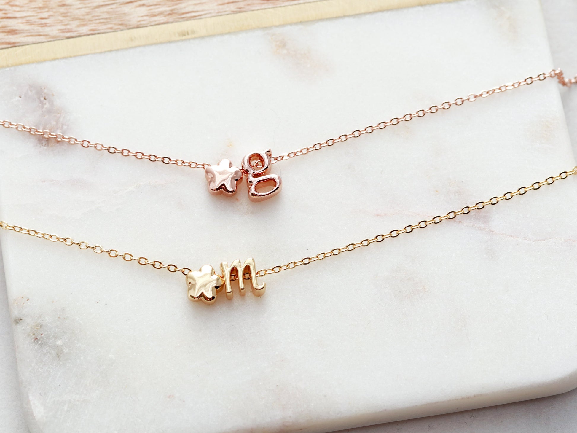 Collier délicat avec initiale pour petite fille, en argent, or ou or rose. Choisissez une initiale avec une breloque fleur, cœur ou étoile.