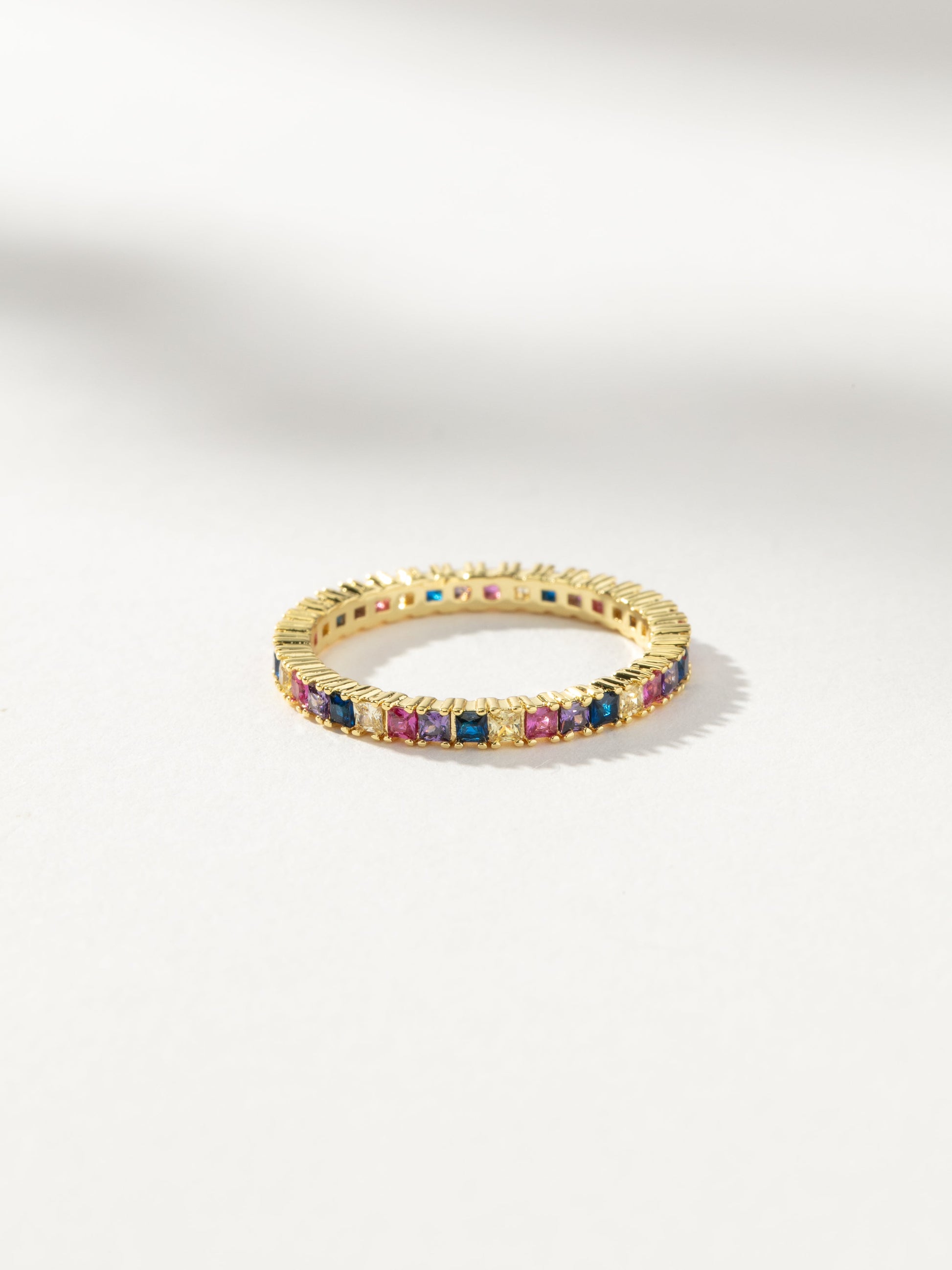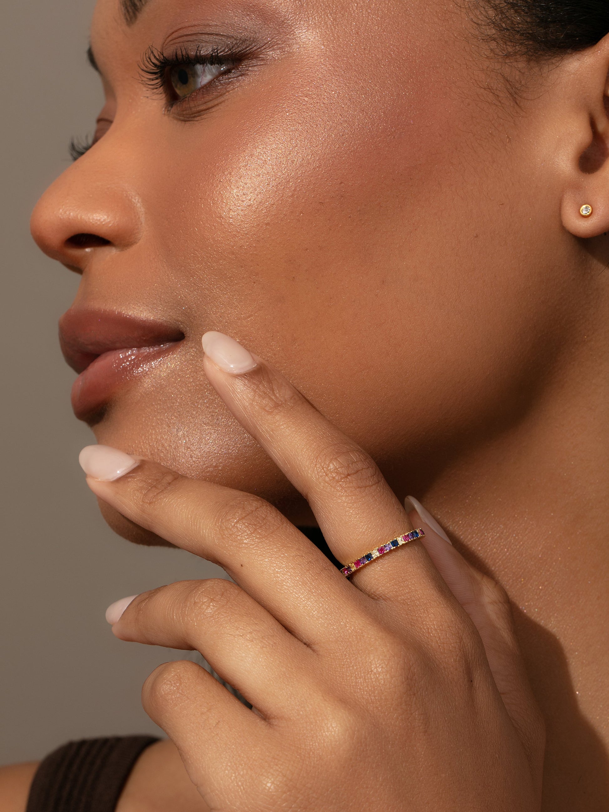 Ajoutez une touche de couleur à votre look avec notre bague baguette colorée à motifs. Envie d'une touche d'or supplémentaire ? Associez-la à notre bague clou texturée pour un duo indémodable.