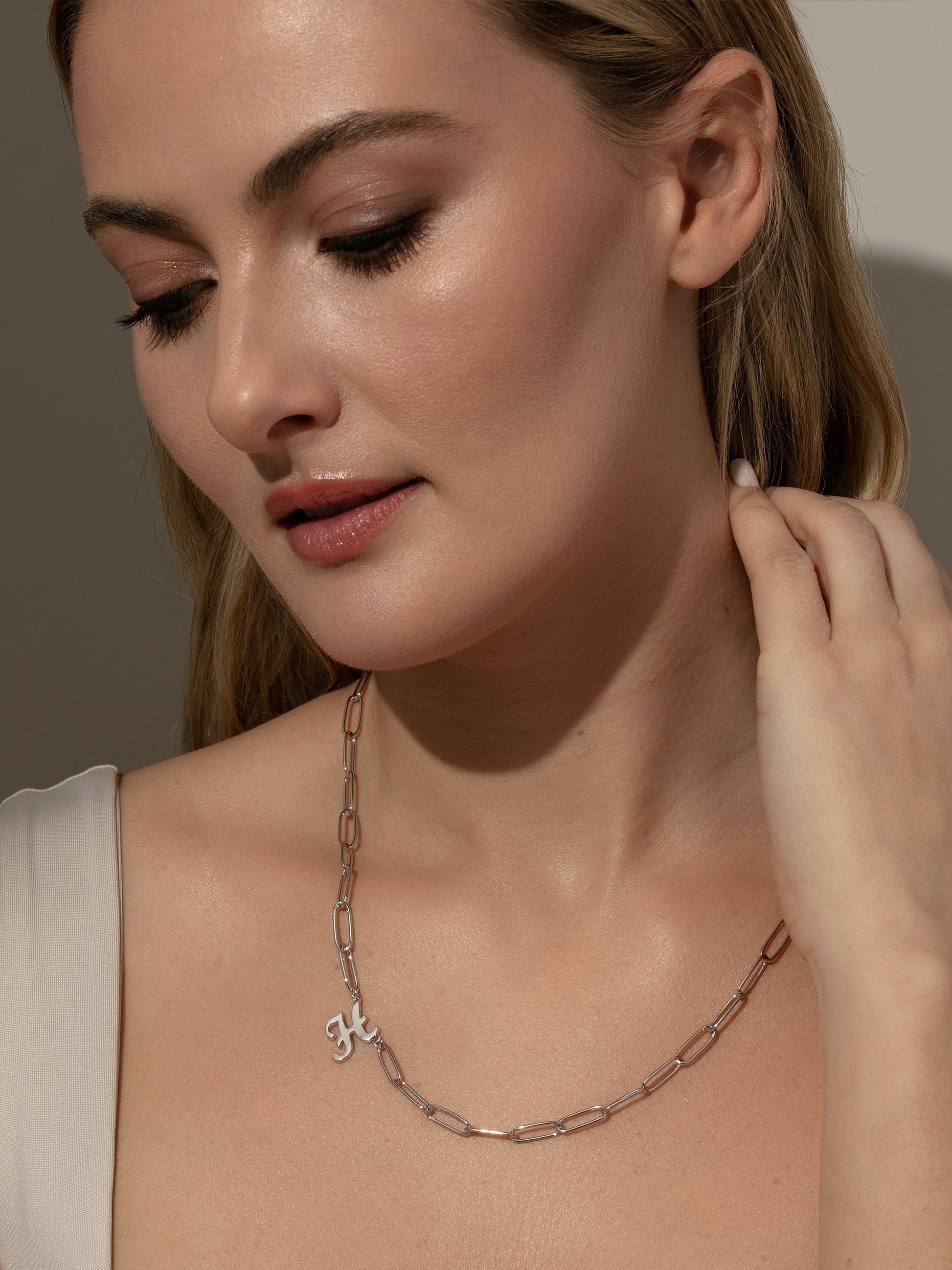 Envie d'un collier lettre qui simplifie votre style ? Découvrez notre collier initiale cursive. Disponible en argent et en or, ce collier initiale est orné d'une large chaîne à maillons et d'une lettre cursive. Pour une combinaison de colliers appréciée de nos stylistes, associez-le à notre collier Lariat Soft Touch , notre collier Ready to Mingle 2.0 et notre collier pendentif goutte .