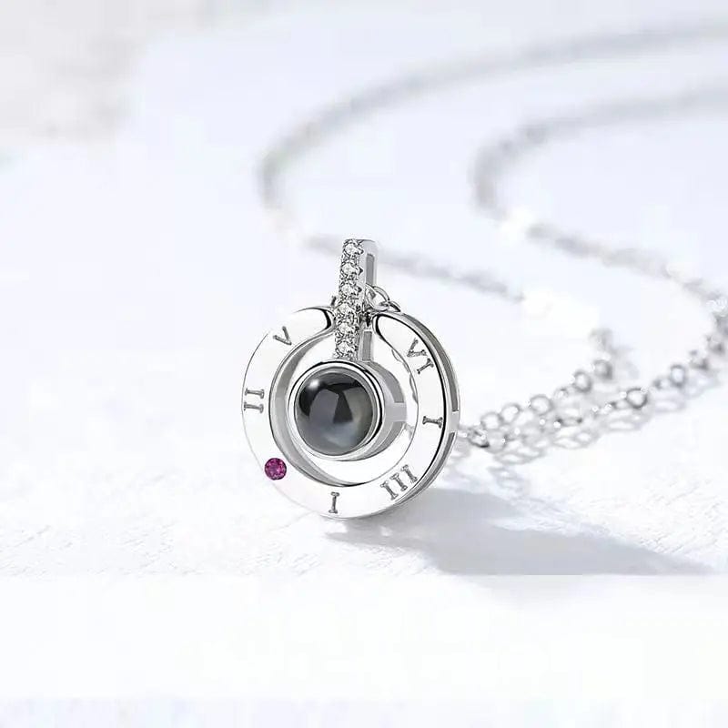 Collier photo personnalisé minimaliste avec chiffres romains cachés