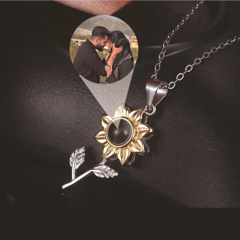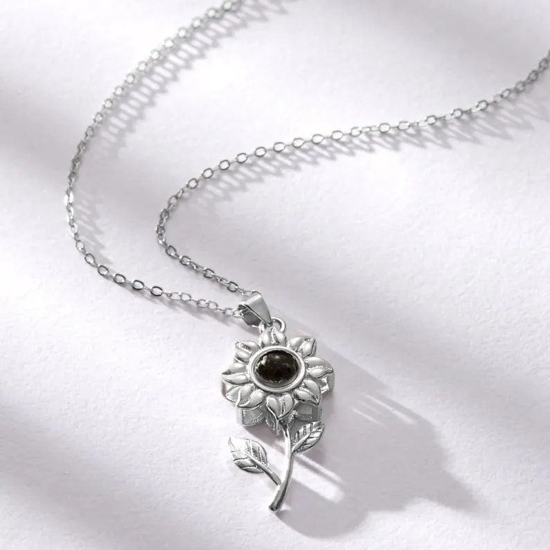 Collier photo personnalisé avec pierre de zircone cachée et tournesol