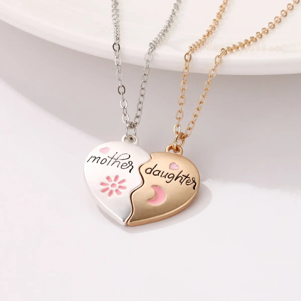 " Chaque collier est orné d'un charmant pendentif en forme de cœur, finement gravé des mots « Mère » et « Fille ». Ces inscriptions sont une façon douce et silencieuse de dire « Je t'aime », ce qui en fait un cadeau sincère et éloquent. Chaque regard posé sur ce pendentif vous rappellera le lien spécial qui vous unit, où que la vie vous mène.