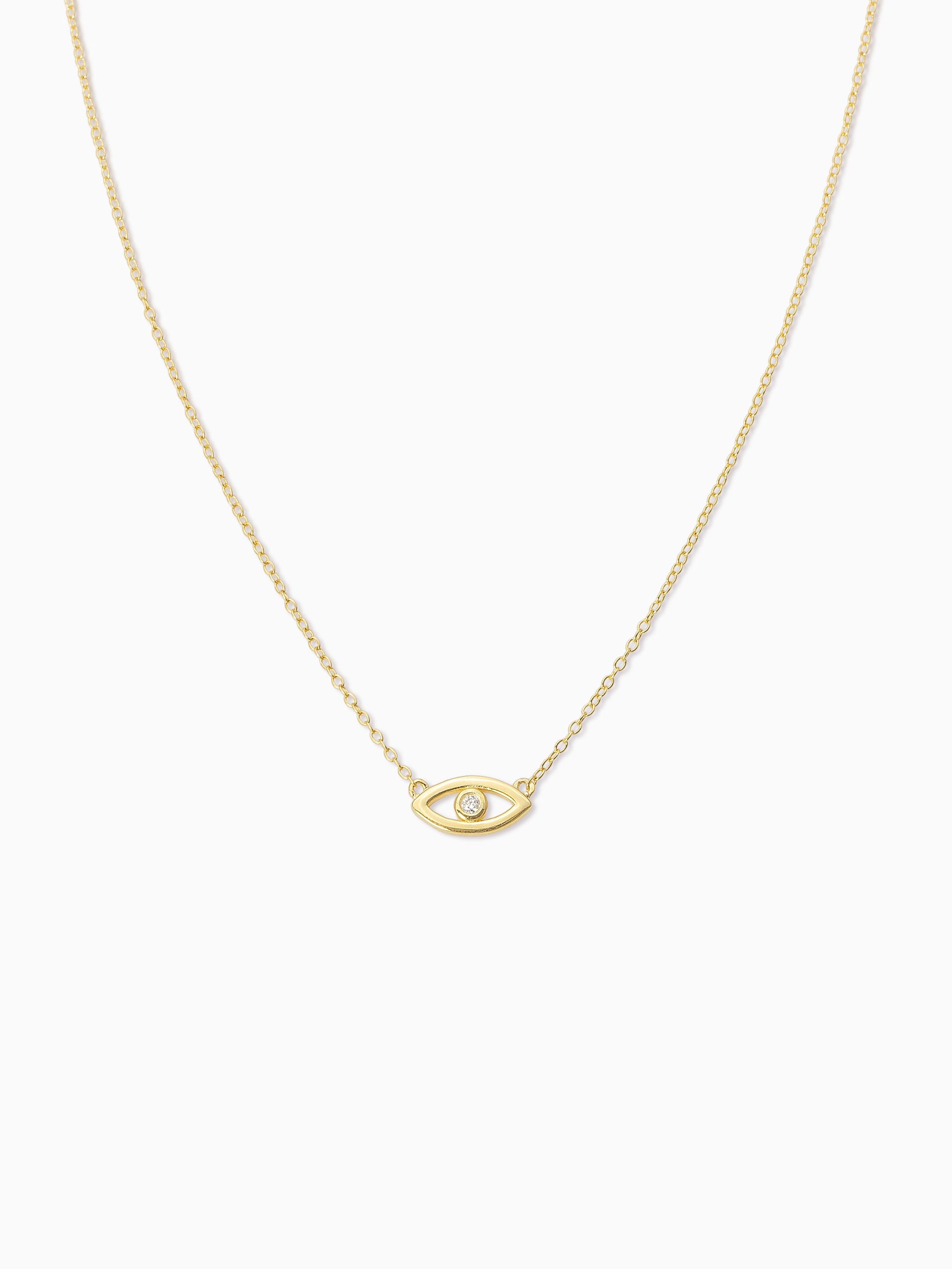 La délicatesse rencontre le glamour avec notre collier en vermeil « Mauvais Œil ». Composé d'une délicate chaîne et d'un pendentif « Mauvais Œil » orné d'un véritable diamant taille ronde légèrement inclus, ce collier en or 18 carats sur argent sterling est un incontournable. Pour recréer le look luxueux de Kristin, associez ce collier chaîne et pendentif à notre collier Levels Lariat en vermeil .