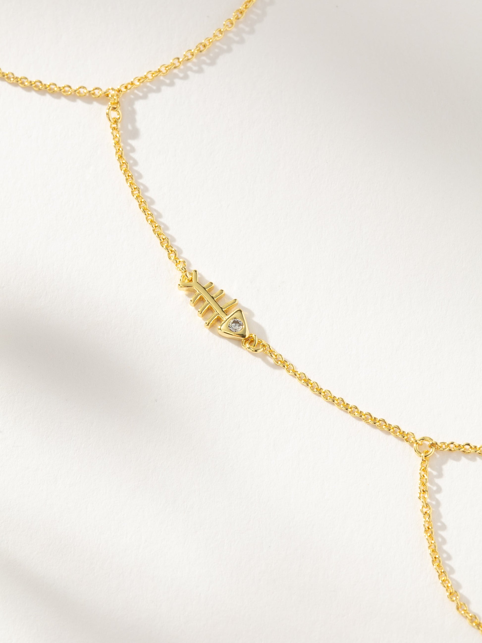 Sublimez vos bijoux avec cette chaîne de main en or. Confectionnée à partir d'une chaîne délicate et d'un motif en arête de poisson, elle s'accordera parfaitement avec vos bagues et bracelets préférés . Pour découvrir d'autres modèles en arête de poisson à associer à notre chaîne de main ce printemps et cet été, découvrez nos essentiels de voyage .