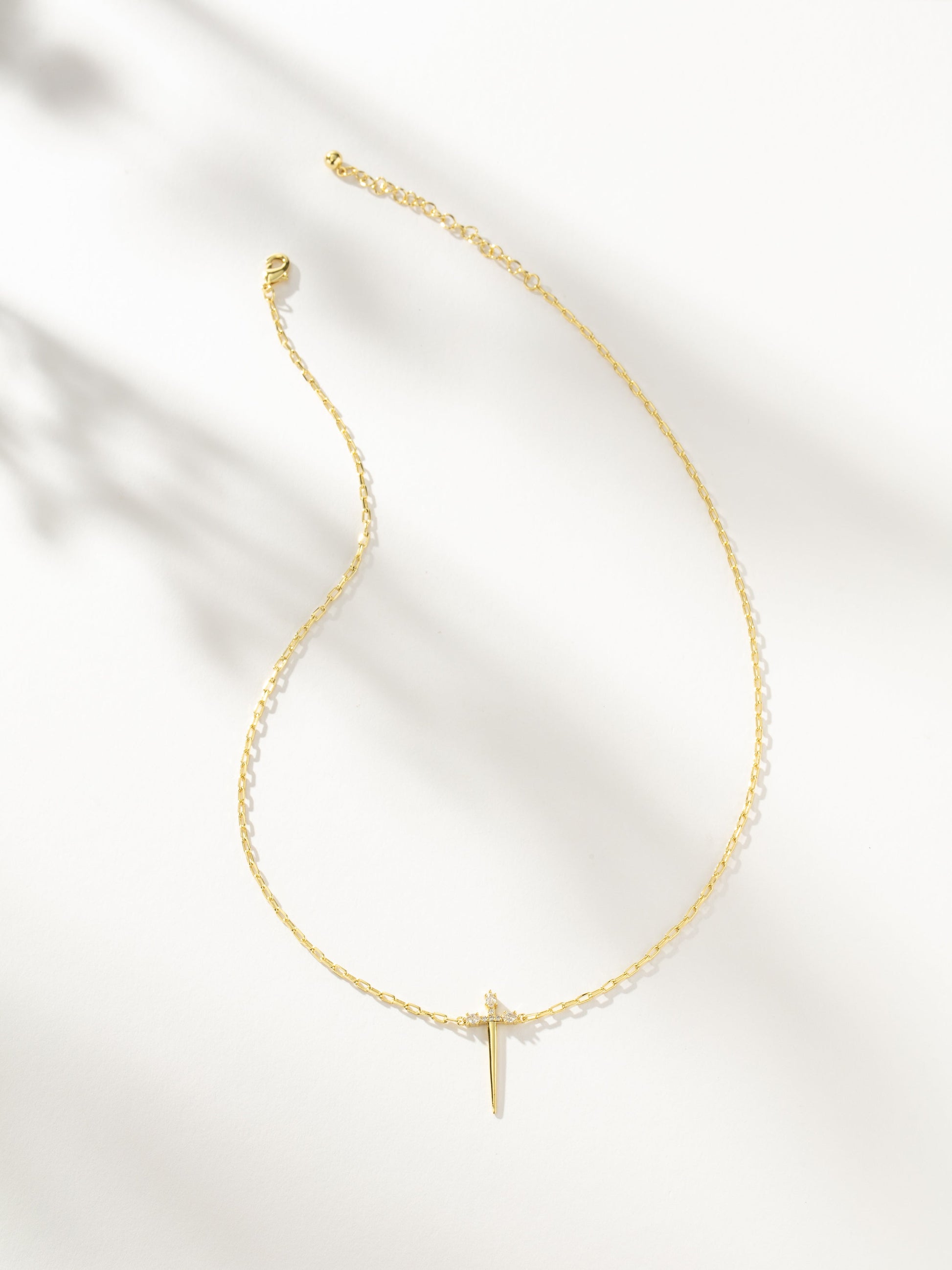 Notre collier Épée dorée attirera tous les regards. Ce pendentif audacieux est composé d'une chaîne en or, d'un pendentif épée et de quelques zircones cubiques pour un éclat accru. Pour un ensemble de colliers qui fera des envieux, associez ce collier chaîne et pendentif à notre collier Main Attraction .