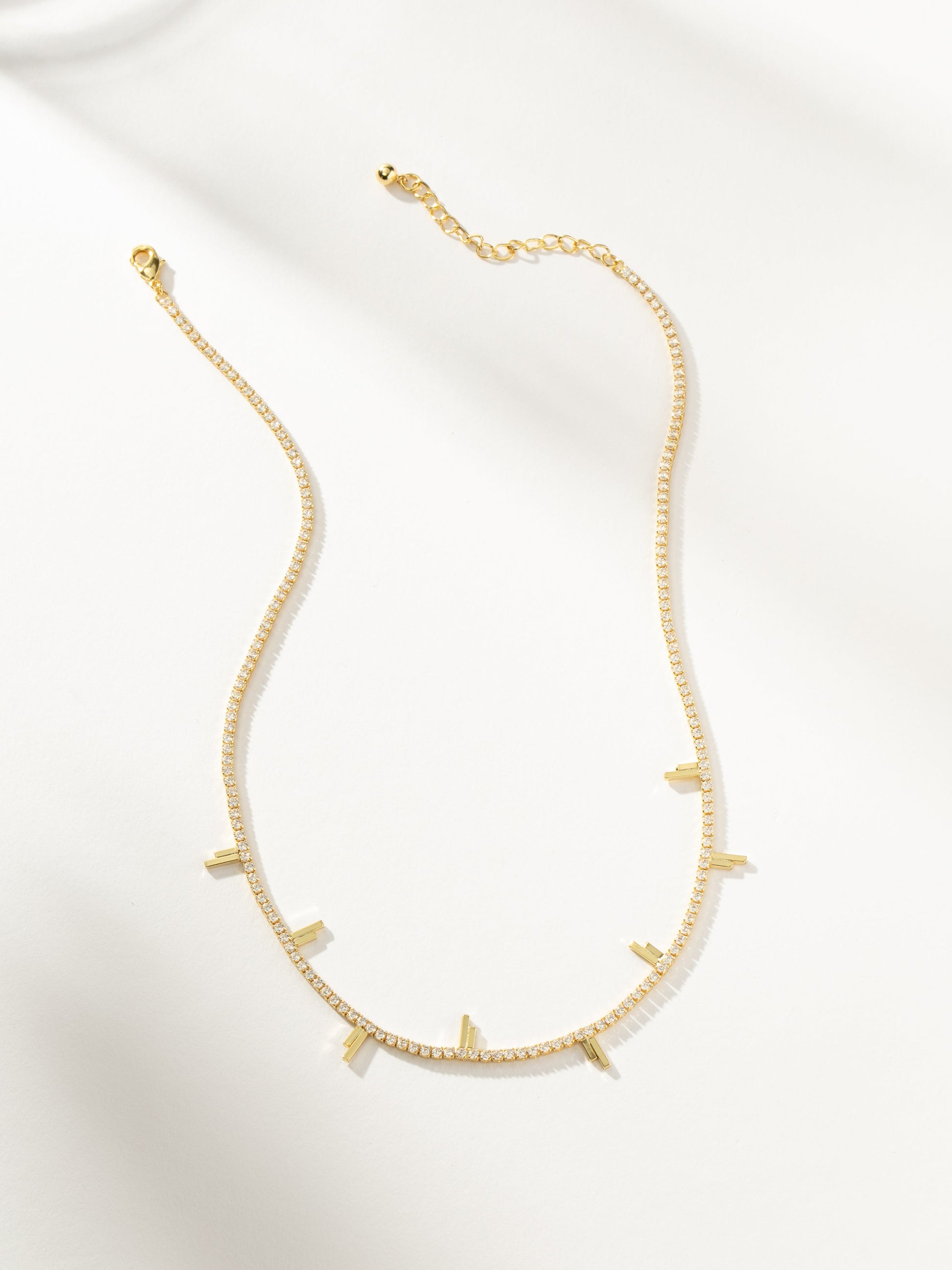 Attirez tous les regards avec notre collier Main Attraction. Ce collier clouté en or est une véritable explosion de paillettes et de glamour, avec des touches d'or uniques comme vous n'en avez jamais vues. Pour recréer le style de Kristin, associez-le à notre collier Épée dorée .