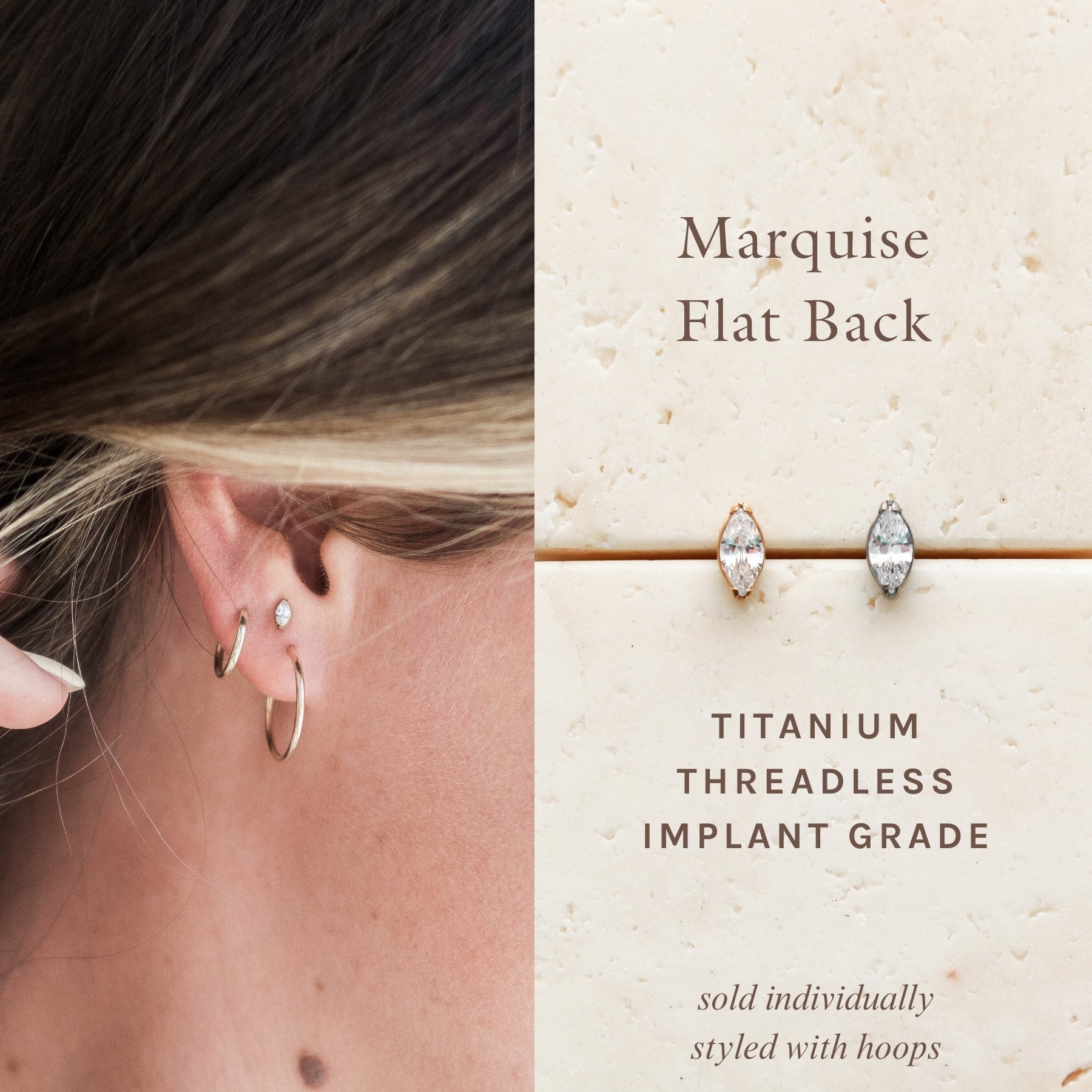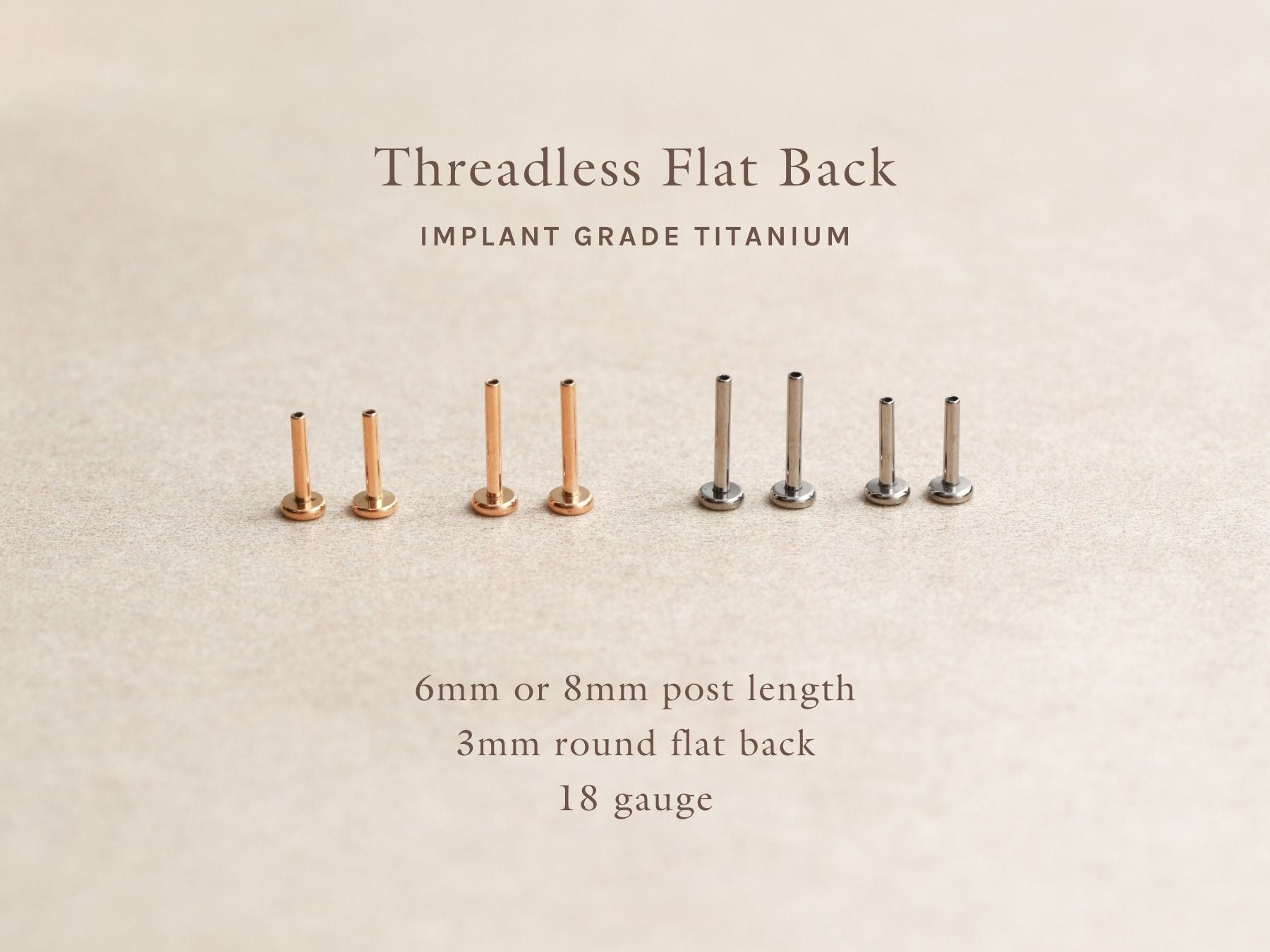 Nos boucles d'oreilles sans filetage sont fabriquées en titane de qualité implantable ASTM F136. Hypoallergéniques et étanches, elles sont conçues pour les oreilles les plus sensibles. Elles s'insèrent à l'arrière de l'oreille et sont maintenues en place par une tige légèrement courbée. Voir la photo d'instructions pour plus de détails.