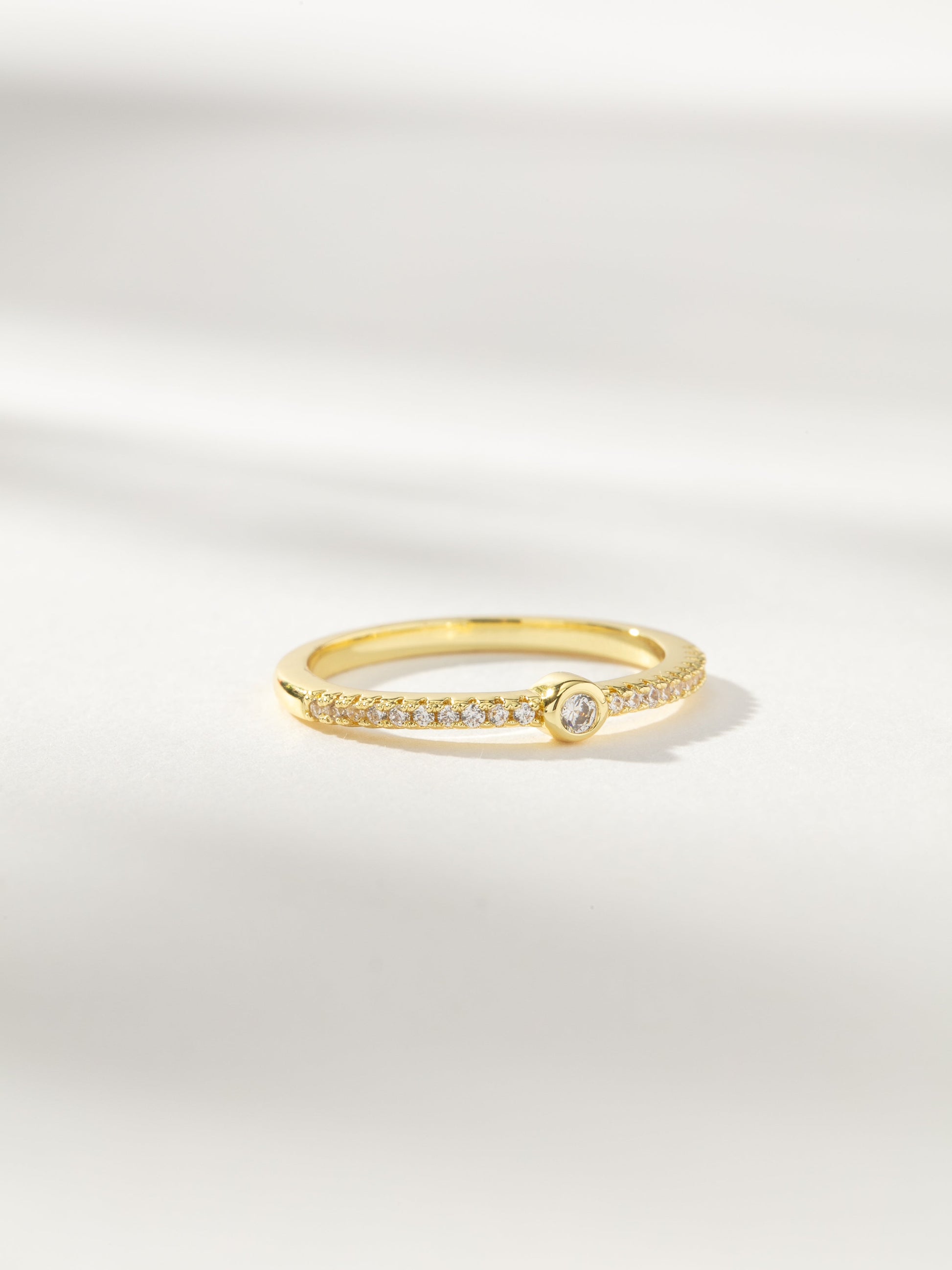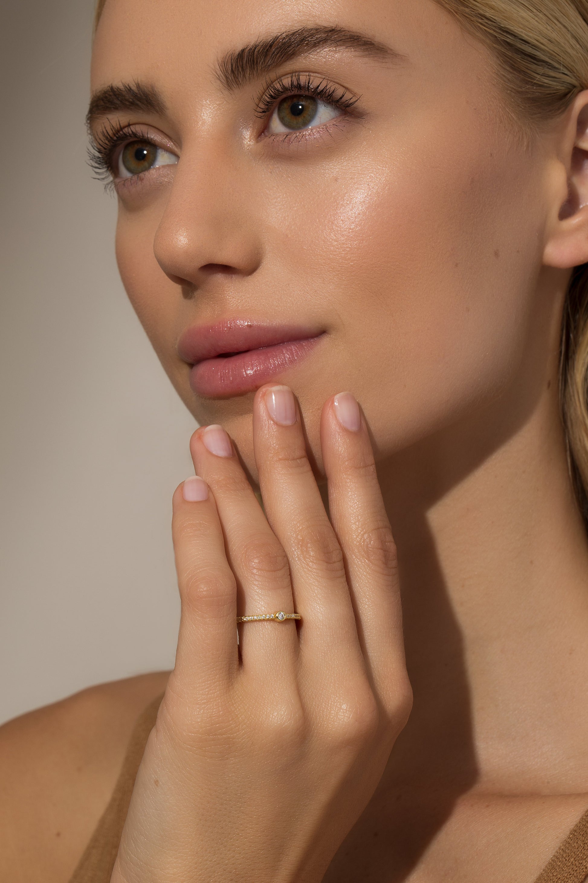 Notre bague Middle Ground est ornée de petites pierres de chaque côté et d'une grande pierre circulaire au centre, idéale pour les superpositions. Cette bague en or apporte la touche d'éclat idéale à vos bagues Uncommon James préférées .