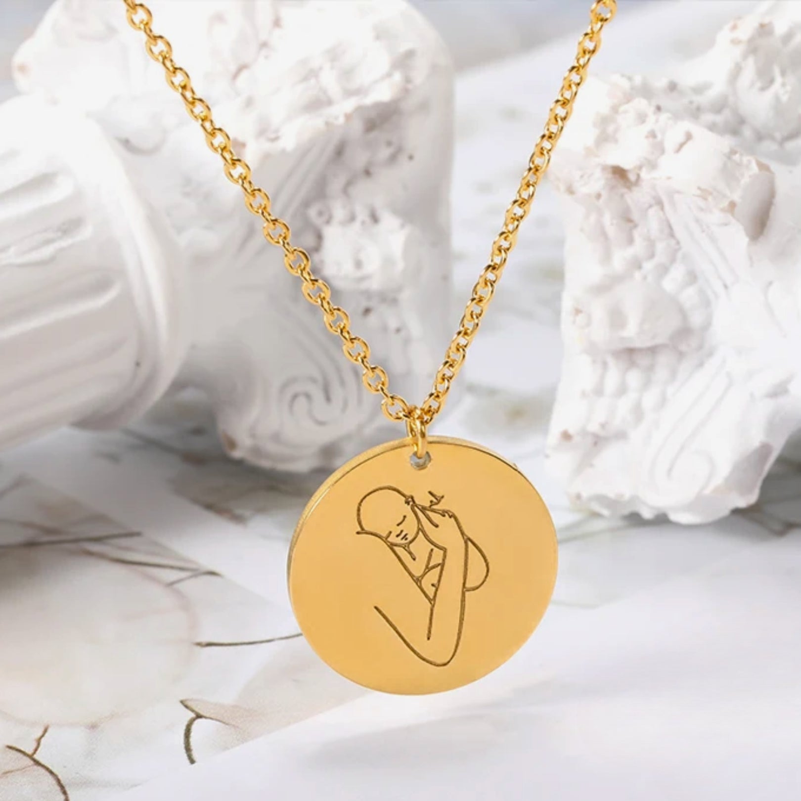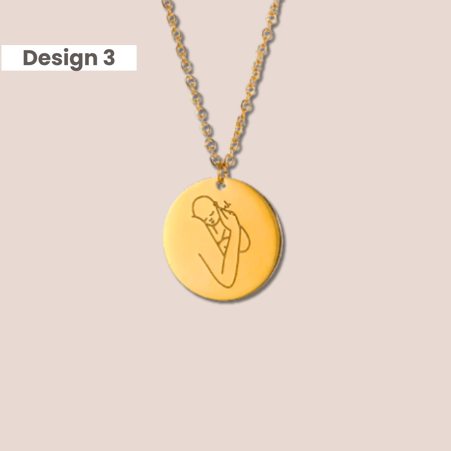 Le pendentif est orné d'une gravure fine représentant une mère tenant son bébé ange, symbolisant le lien éternel entre un parent et son enfant. Ce motif poignant rappelle avec douceur que l'amour transcende les frontières, préservant ainsi le souvenir d'un petit être cher.