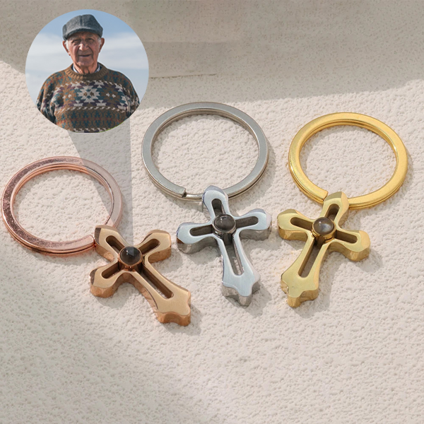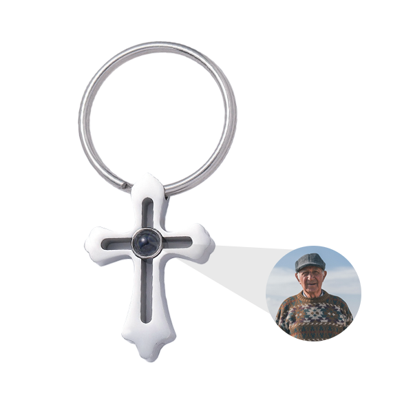Porte-clés photo commémoratif personnalisé en forme de croix
