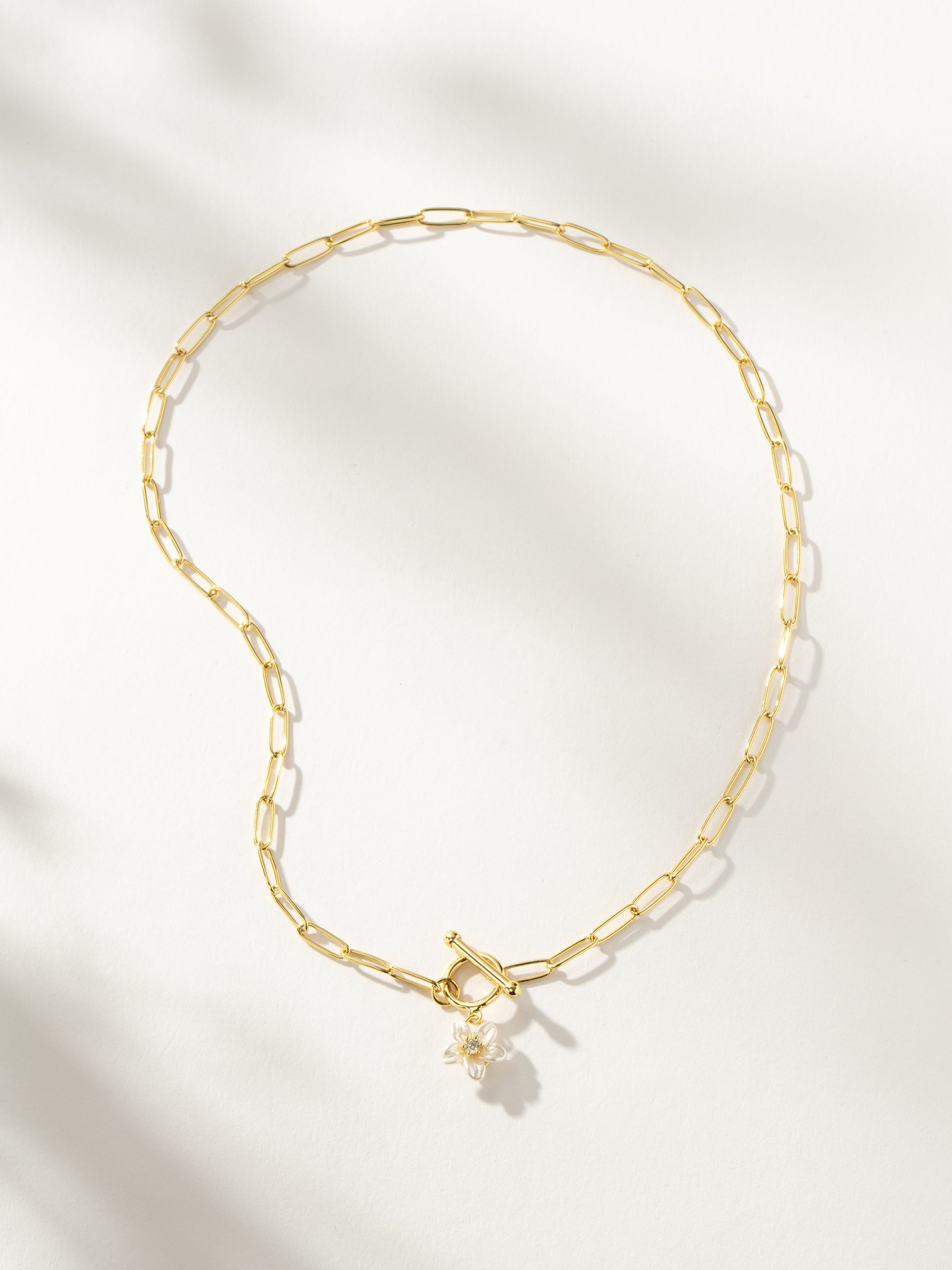 Tout le monde sait que nous avons un faible pour les bijoux fleuris , alors on craque pour le collier chaîne et pendentif Picking Petals. Ce collier chaîne trombone est orné d'un fermoir et d'un pendentif fleur blanche. Pour recréer la collection de colliers de Kristin, superposez ce collier chaîne en or à notre collier de pierres précieuses roses et blanches .