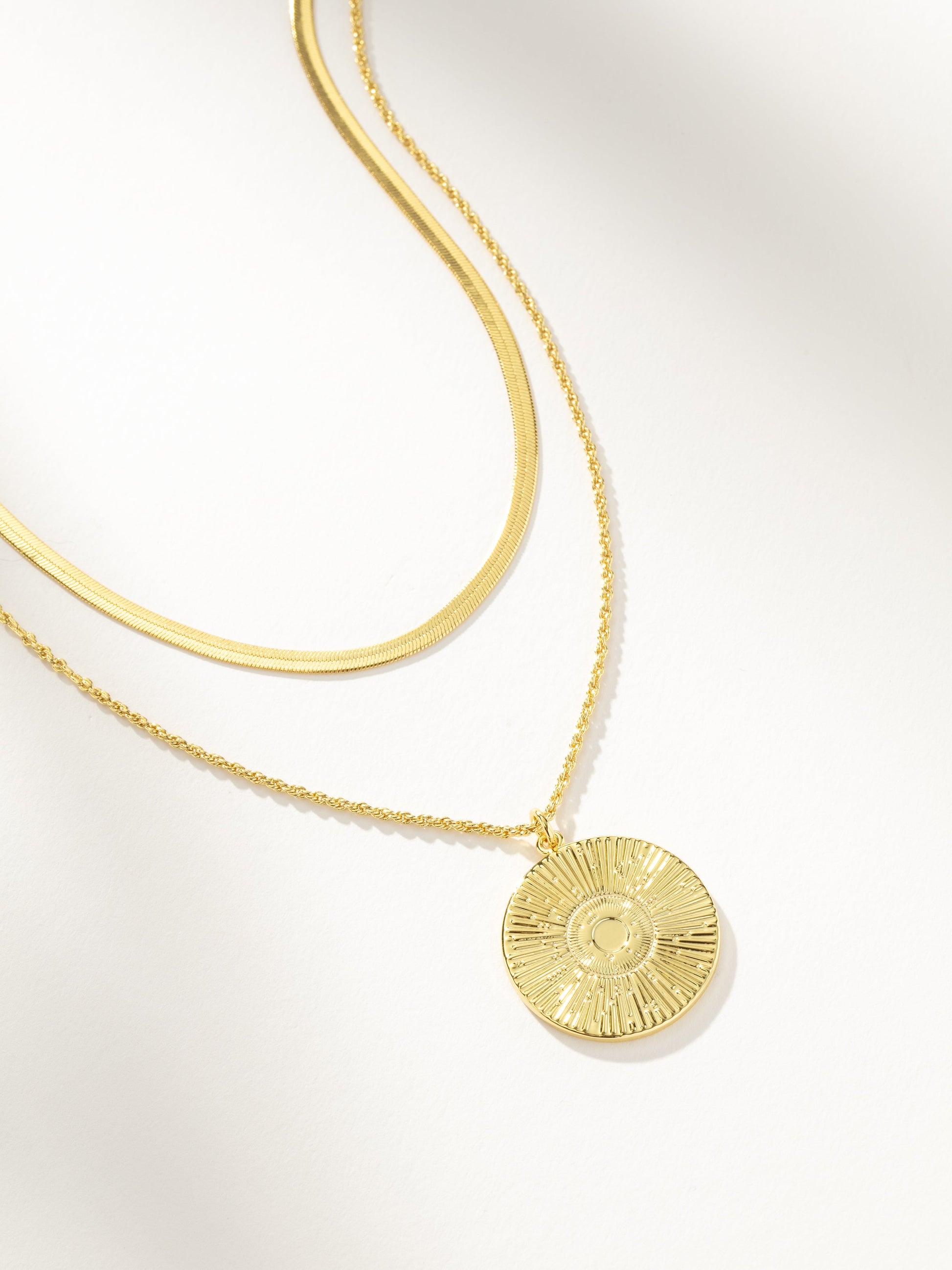 Son nom est éloquent. Notre collier Simple Beauty est un bijou à deux rangs tout simplement éblouissant. Composé d'une courte chaîne à chevrons et d'un long pendentif médaillon, ce collier à double chaîne vous offrira un look superposé en un seul morceau.