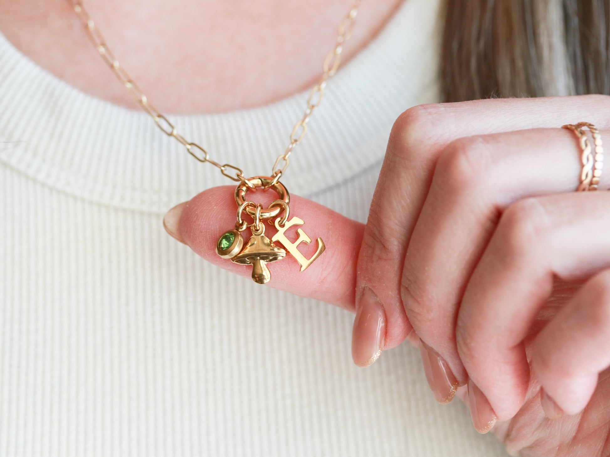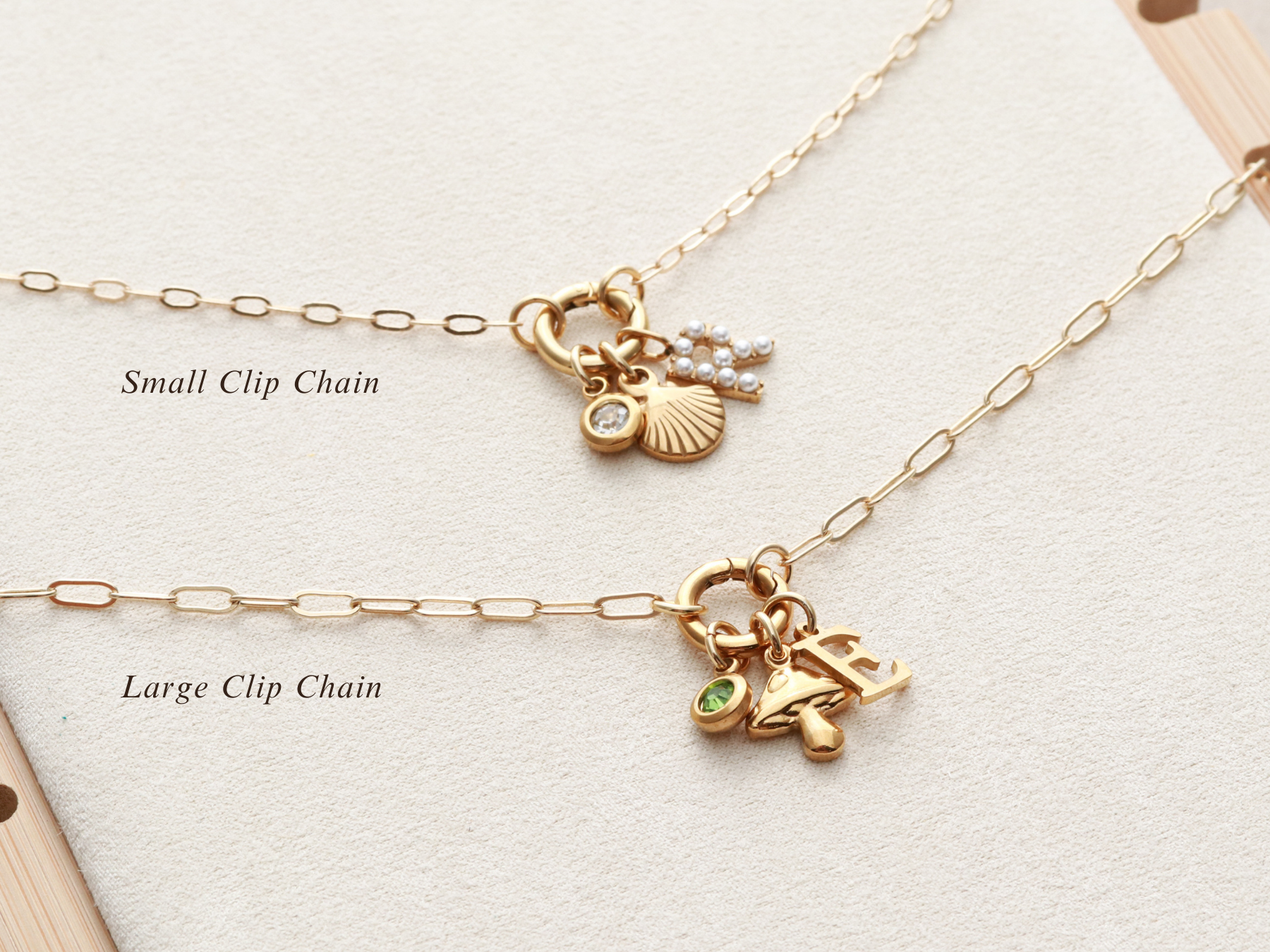 Notre collier à breloques avec anneau à ressort est composé d'une chaîne à clip en or rempli 14 carats et d'un support robuste pour breloques, idéal pour créer un bijou véritablement personnalisé. Les breloques sont en acier inoxydable plaqué or 14 carats-18 carats, résistantes à l'eau, au ternissement et durables. L'anneau à ressort s'ouvre et se referme grâce à une charnière, permettant ainsi leur interchangeabilité.