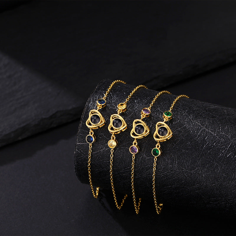 Birthstone Heart Bracelet with Photo Inside