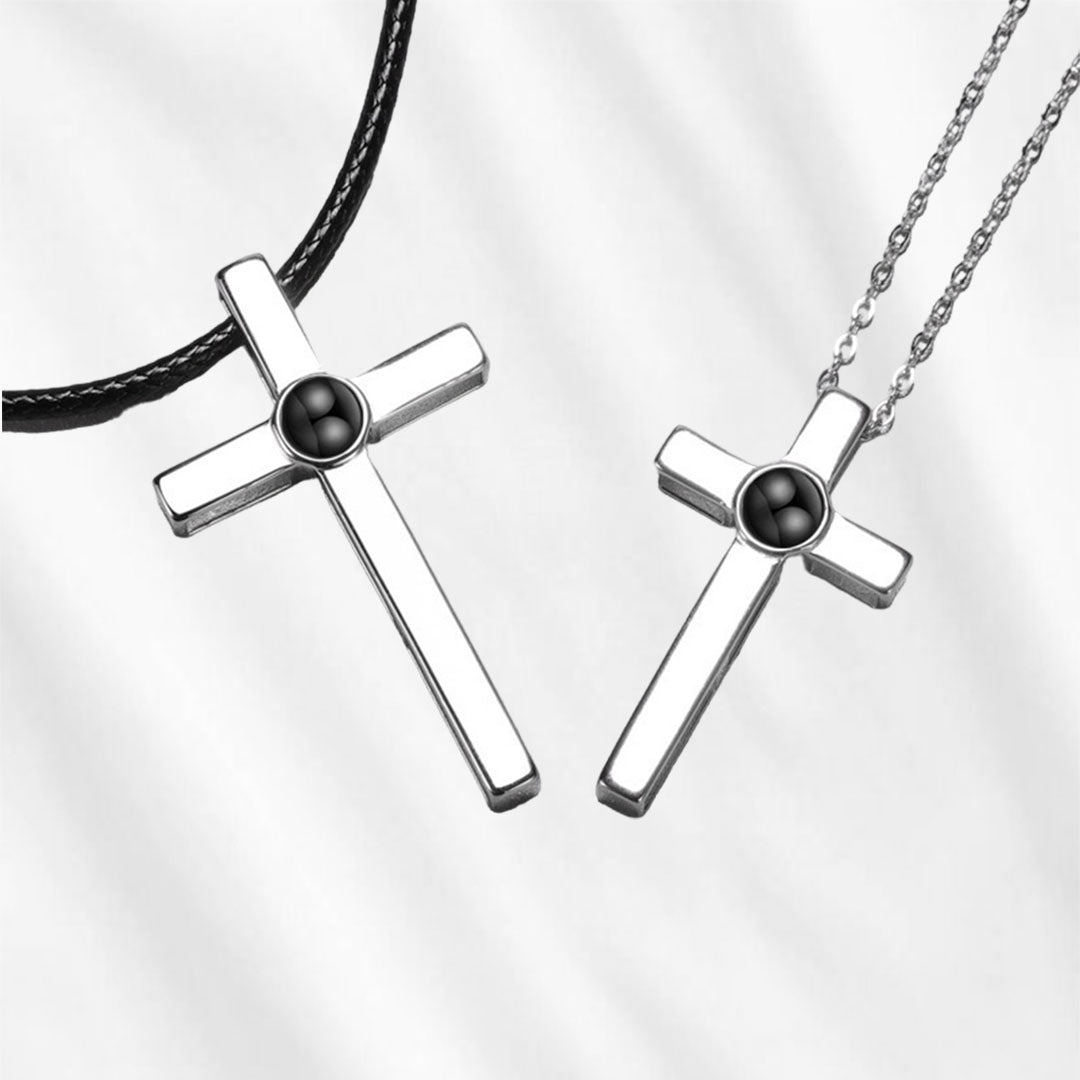 Cross Projection Necklace Couple Set for Her for Him - Customodish