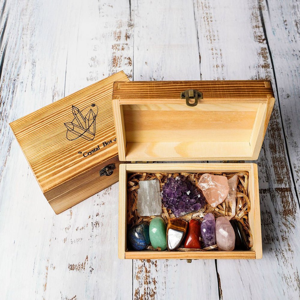 This Meditation Crystal Box can bolster your chakras' health and vitality. Crystals are rocks that are one of the four essential elements charged with natural energy. They act as a filter with your aura, absorbing negative energy, soothing you, and can synchronize with your intentions.
