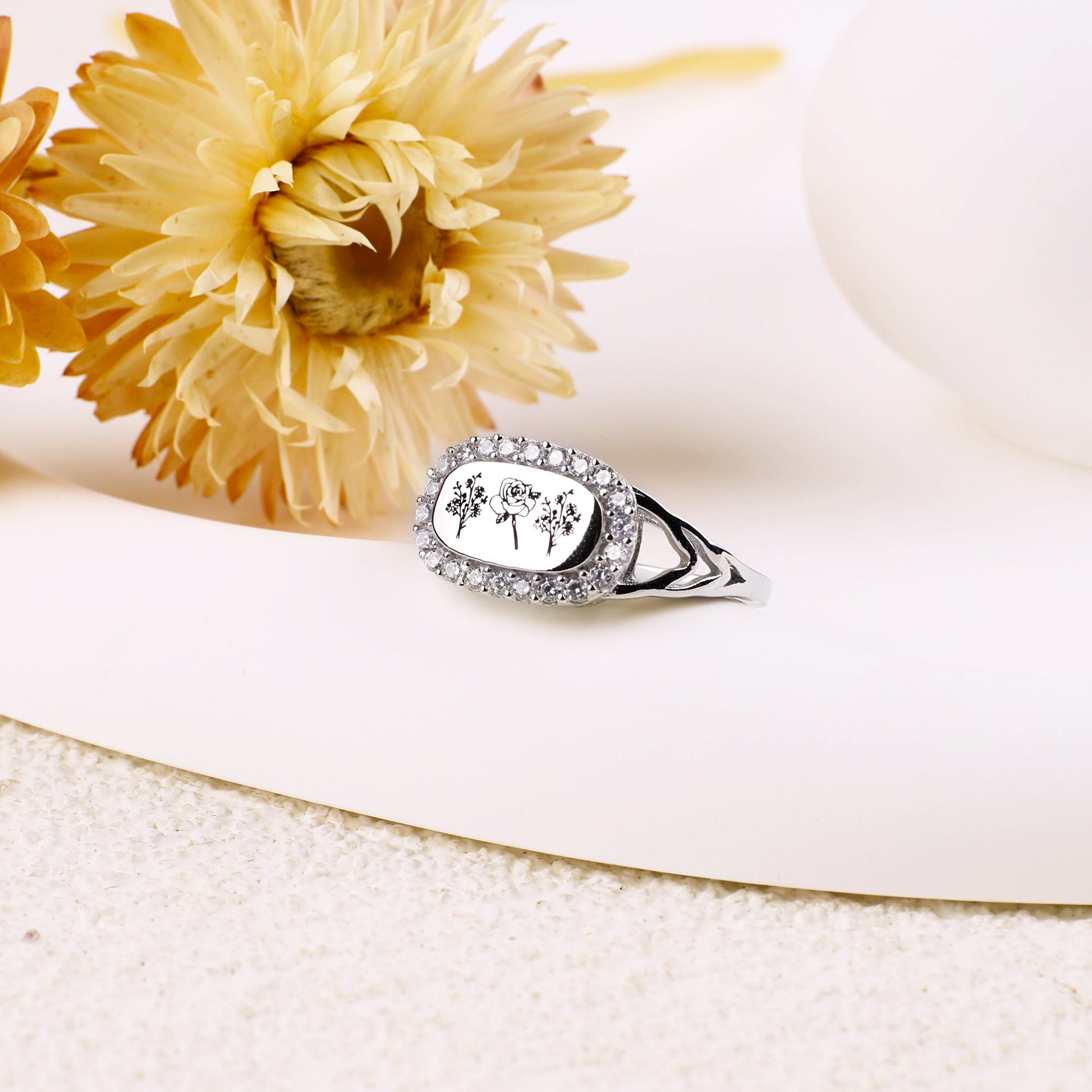 This beautiful Personalized Birth Flower Bejeweled Ring is the perfect way to commemorate a special day. Crafted from sterling silver and finished with 18k gold vermeil, it features up to six personalized birth flowers, making it a treasured keepsake.