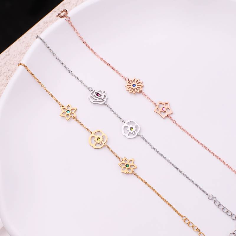 Personalized Birth Flower Charm Bracelet