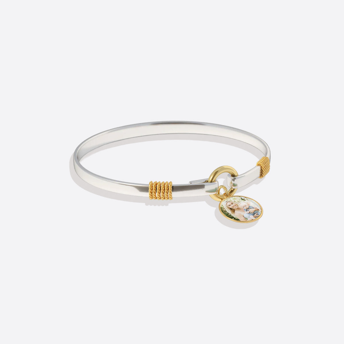 A beautiful silver and gold plated bracelet with your personal photo. The perfect memento; carry the moments you love the most with you every day.