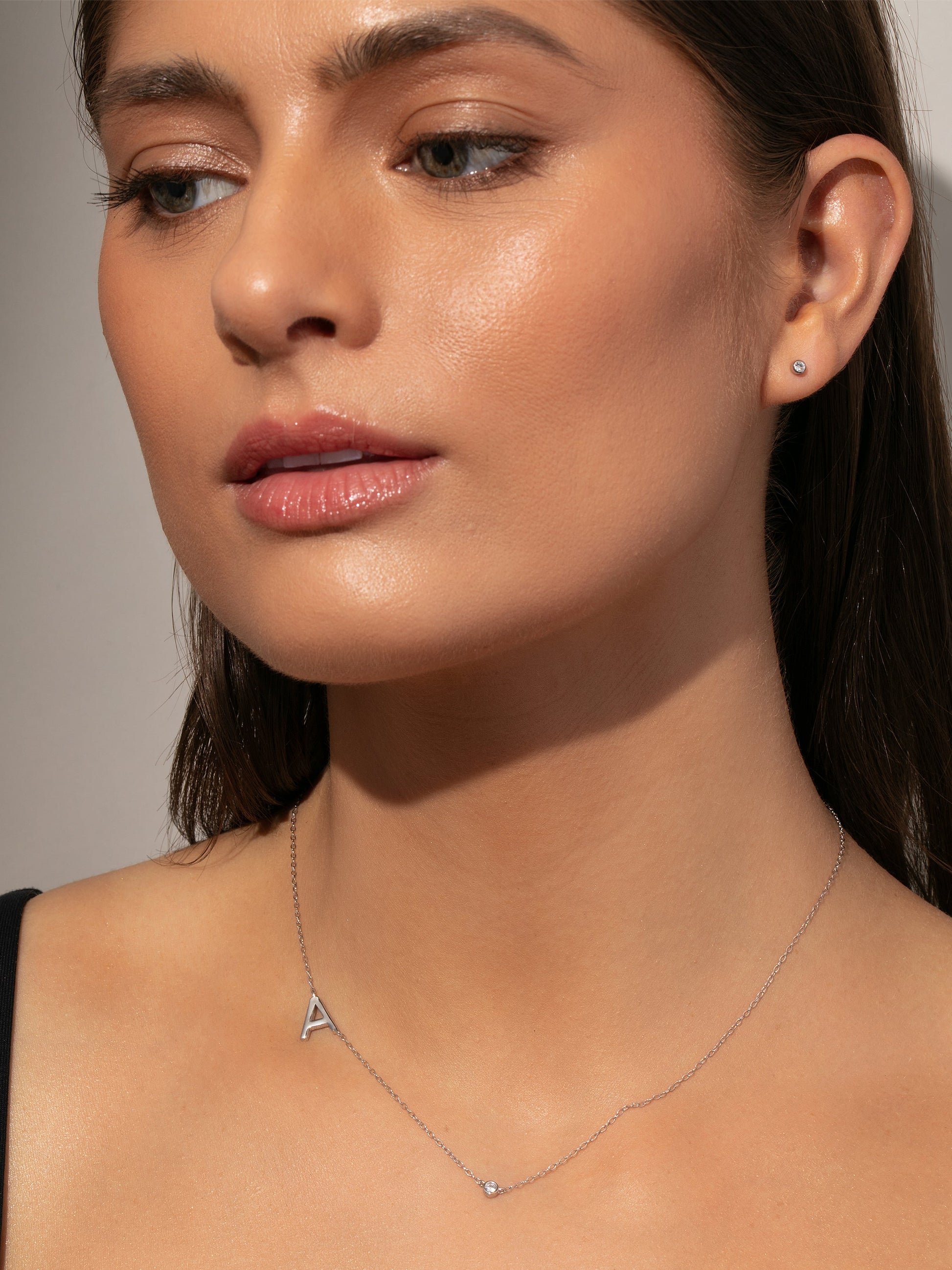 Add a touch of sparkle and a touch of personalization to your stack with this initial necklace. Coming in gold or Sterling Silver, this dainty chain necklace makes the perfect layering piece. For a full look, pair the Personalized Touch Necklace with anything from our Initial Jewelry Collection.