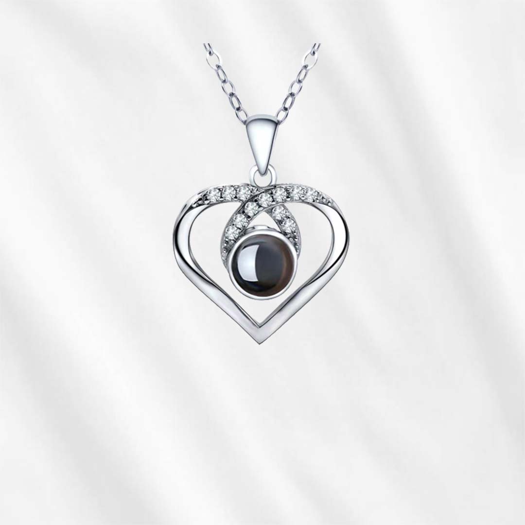 Looking for a projection necklace in gold? You can stop here! This heart pendant projection necklace comes in three colors: silver, gold and rose gold, made of sterling silver and plated in 18K gold. The gold color is a popular choice if you're shopping for him.