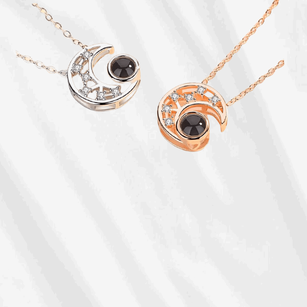 Buy the Moon Projection Necklace and say "I love you to the moon and back"! Your loved one will be the focus of attention with this special and meaningful pendant, which hides a personalized picture inside its center stone.