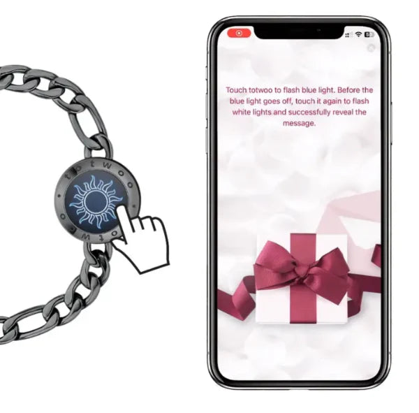 With just a simple touch, your partner's bracelet will light up and vibrate, no matter the distance. Each touch means "I am thinking of you".