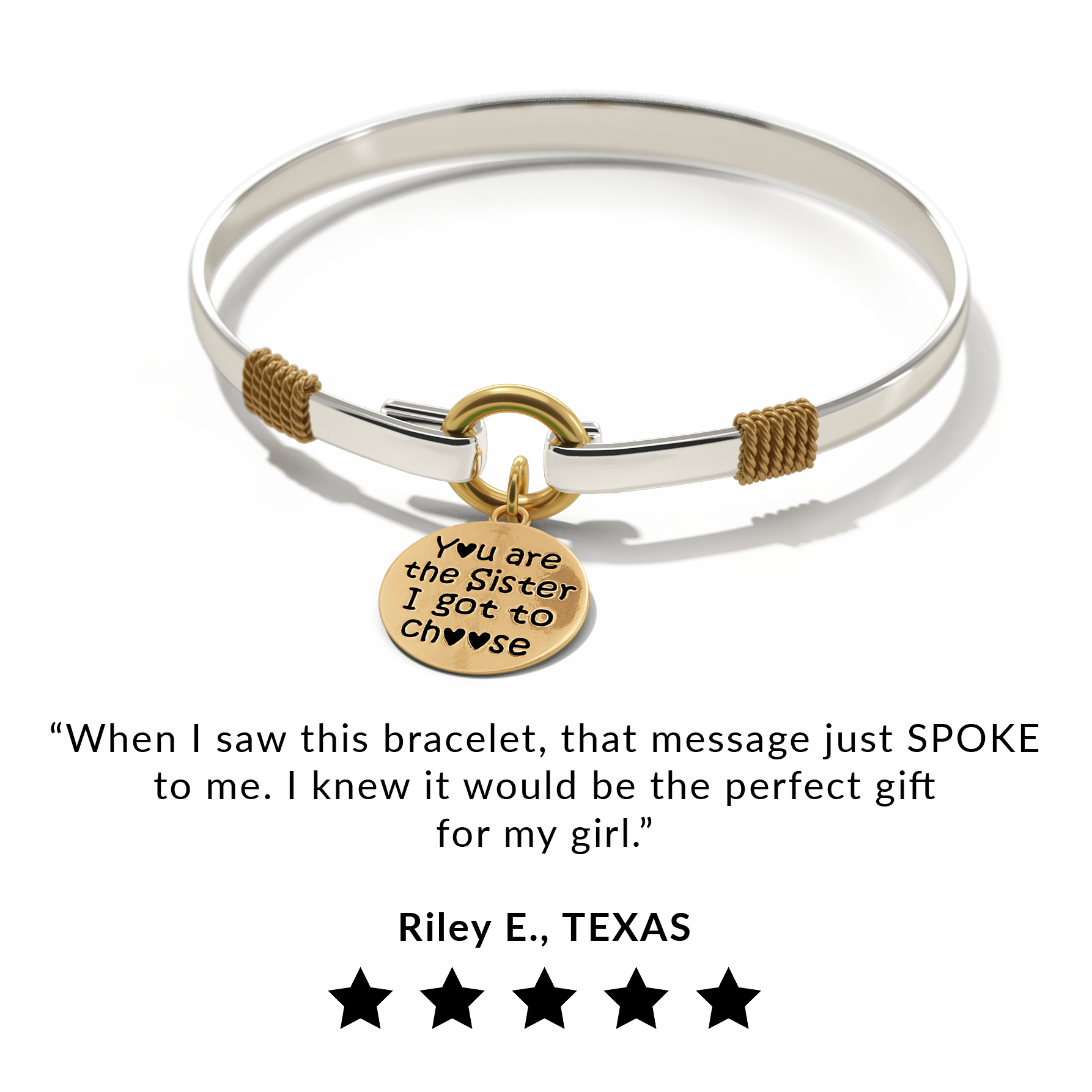 Celebrate the sisterhood you chose with Mint & Lily’s 'Sister I Got To Choose' Two-Tone Custom Charm Bracelet.